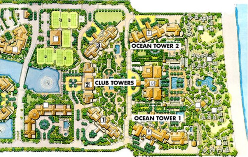 The exclusive residential community Ocean Club includes six 4-7- story villas and five 14-18- story towers.
