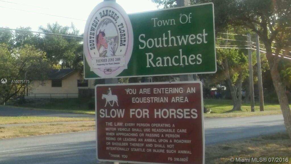 BUILD YOUR DREAM HOME ON THIS BEAUTIFUL RESIDENTIAL 1 ACRE LOT!! IN QUIET, PEACEFUL SOUTHWEST RANCHES, AN EQUESTRIAN COMMUNITY!! GREAT FAMILY LIVING.... CLOSE TO MILLIONAIRE HOMES, TOP GRADE A SCHOOLS, SHOPPING CENTERS, MAJOR ROADWAYS I-75, 595 AND SAWGRASS EXPWY. CENTRALLY LOCATED BETWEEN WESTON AND PEMBROKE PINES. LOT IS CLEARED AND FULLY FENCED. PER ZONING DEPT. MINIMUM 1,500 SQ FT HOME AND 1 LIVESTOCK PER 10,000 SQ FT OF LAND. DRIVE BY AND CALL AGENT FOR MORE INFORMATION.