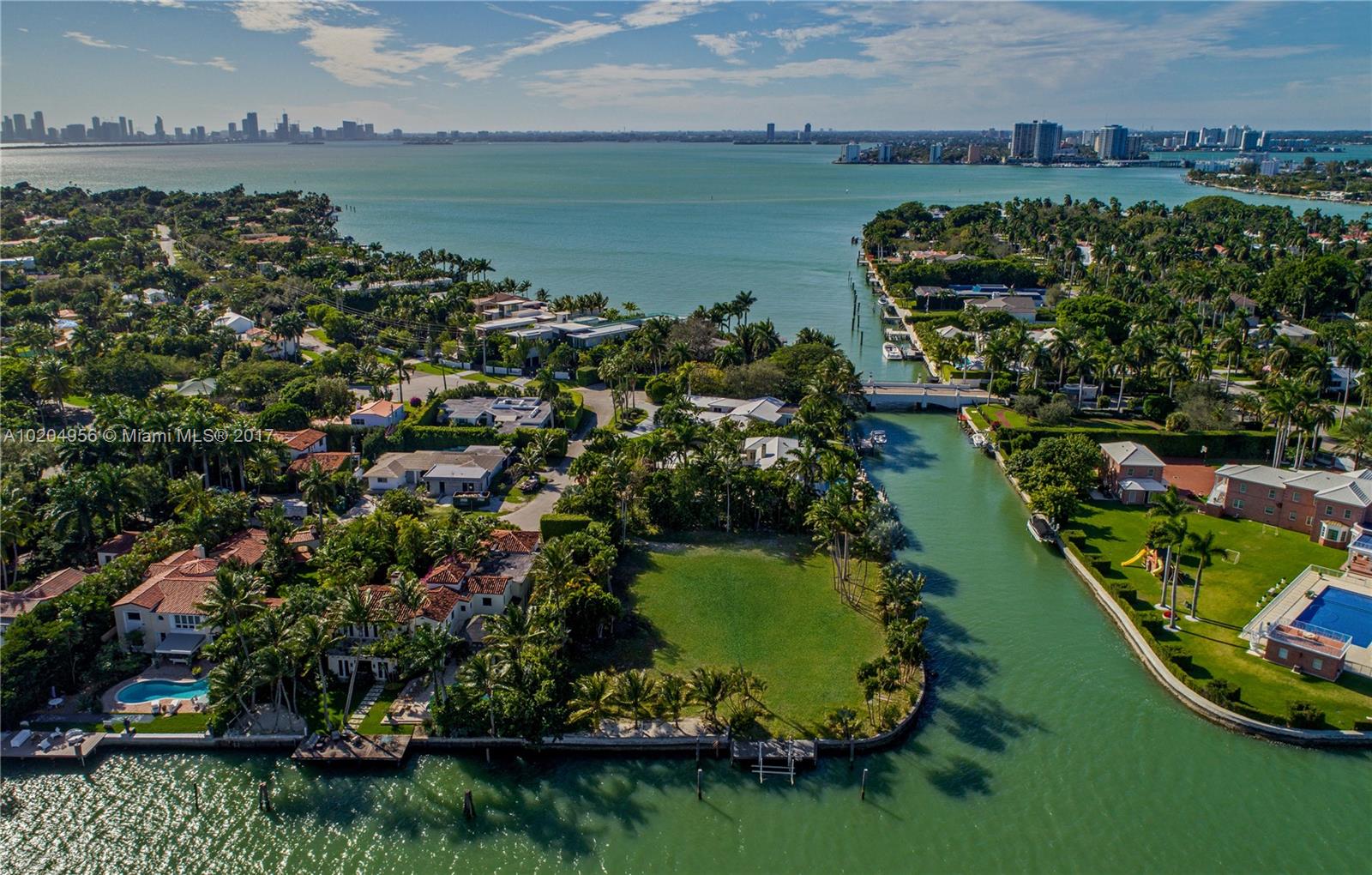 This unique 27,860 SqFt corner lot boasts 343 Feet of wrap-around water-frontage w/ vast water views across the La Gorce & Indian Creek Waterways. Create your own private sanctuary in a quiet cul-de-sac on Pine Tree Drive Circle. This property is ideal for even the largest private yachts, with unobstructed access to Biscayne Bay and the ocean. Architectural plans for a 9,256 Square Foot home by famed Miami architect Kobi Karp are available upon request, or design/build your own home up to 13,566 SqFt.