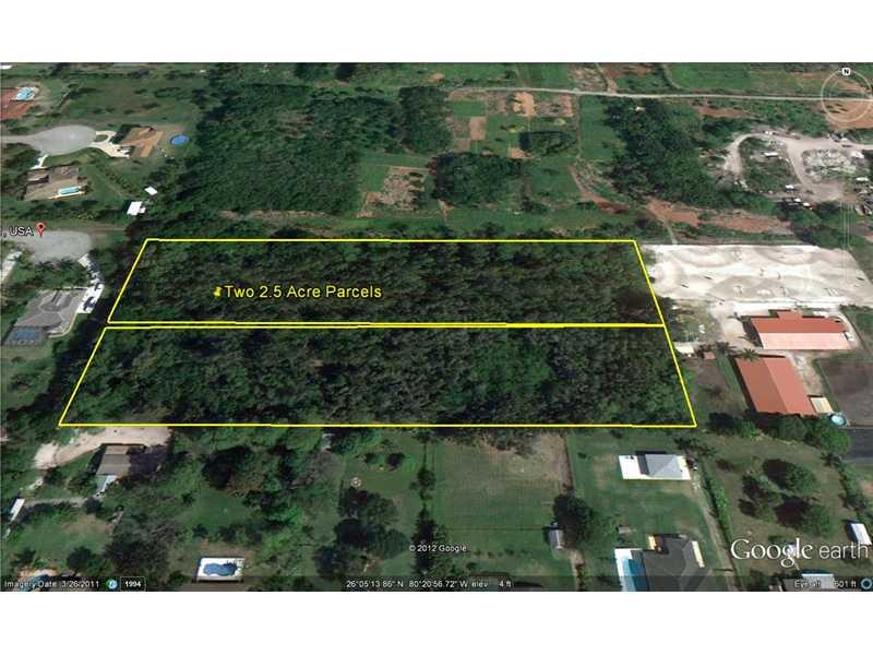 4.78 ACRE PARCEL LOCATED AT THE END OF EXISTING SW 26TH STREET, JUST EAST OF SHOTGUN ROAD IN DAVIE. A PORTION HAD BEEN USED AS A PALM TREE FARM IN THE PAST, BUT HAS BECOME OVERGROWN. COULD BE CLEARED AND USED FOR A CONTAINER NURSERY, TREE FARM, AN EQUEST RIAN CENTER, SECLUDED ESTATE, OR MAY BE PLATTABLE INTO 4 HOMESITES. CLOSE TO I-75, I-595, SAWGRASS MILLS MALL, NOVA SOUTHEASTERN UNIVERSITY, BROWARD COLLEGE, 165 MILES OF EQUESTRIAN TRAILS, AND LET'S NOT FORGET THE MIAMI DOLPHINS TRAINING CAMP.