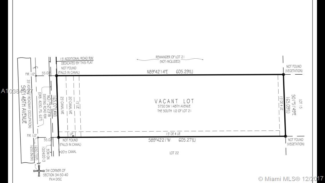 Looking for SPACE to build your DREAM HOME...? This 2.29 acres lot in SW Ranches has the perfect dimensions (165' x 605' approximately) to build your FUTURE RESIDENCE. Close to Sunshine Ranches Equestrian Park this is a peaceful and quite location. Zoned RR (Rural Ranches), this lot offers an endless Land Usage, such as: Single-Family Home, Plant Nursery and others.
