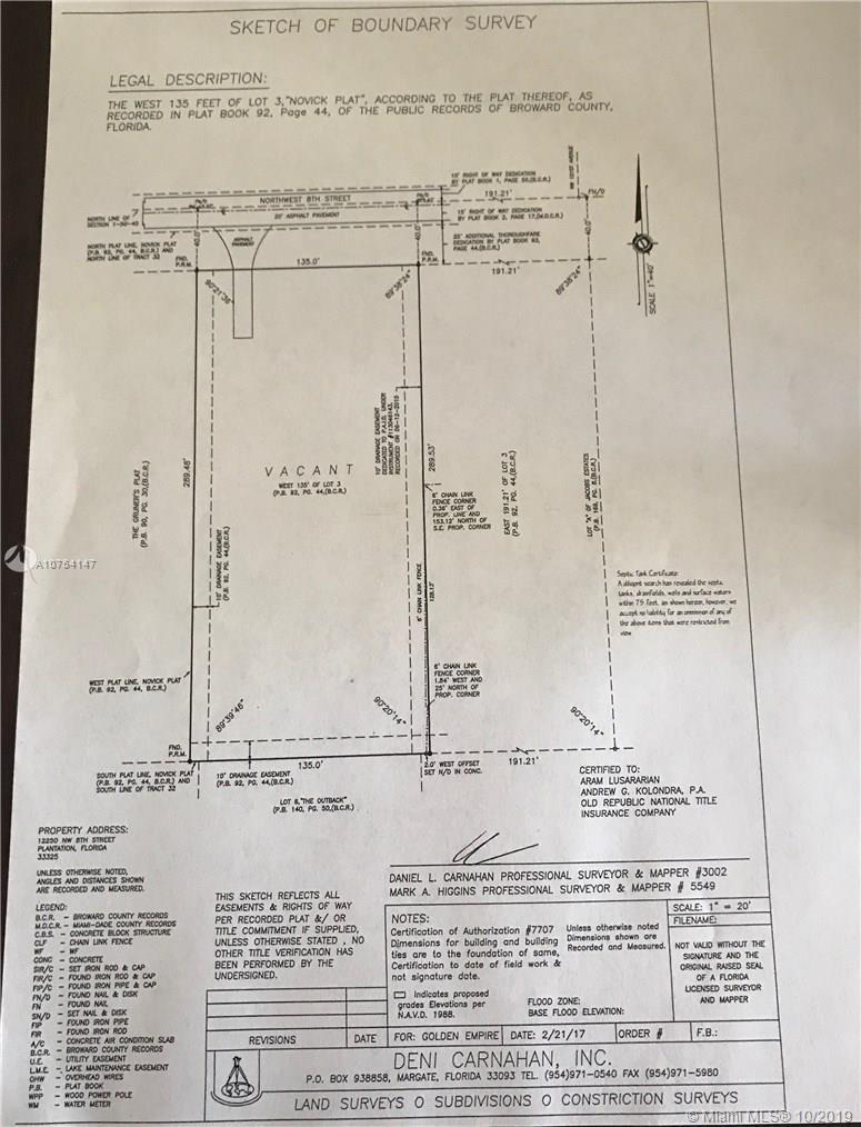 Prime Location. Great Opportunity to Custom-Build Your Dream Home in the Desirable Plantation Acres. This Magnificent Builder's Acre is Surrounded by Multi-Million Dollar Estate Homes. North Facing Entrance, Deep Lot. No Home Owners Association. Community is Known for its Equestrian Park, Horse Trails and Ranches. Close to Main Highways; I595, I75, Sawgrass Hwy., Sawgrass Mall, Great Restaurants a Few Minutes from American Heritage Prep School. One of the Best lots in the Street. Already De-mucked. Soil Test and Survey Available.
