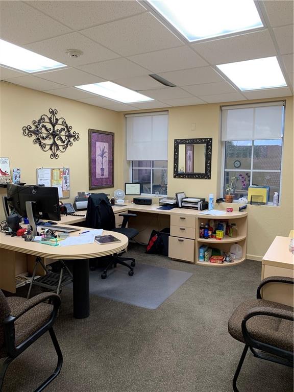 BEAUTIFUL 1466 Sq Foot Class A office with 5 private offices, Reception area, Kitchen, Restroom and extra wide hallway which can accommodate desks if needed. One office is large enough to be used as a conference room and is accessed from reception or from interior of unit. Air conditioning replaced with new unit in 2018. Storage/Printer/Copier alcove with cabinetry. Association Maintenance covers all exterior, building, roof and landscaping maintenance and repair. Unit has all impact glass windows and doors. Building is one of 22 buildings on a 17 acre Campus with entry from both University Dr. and Westview Drive.