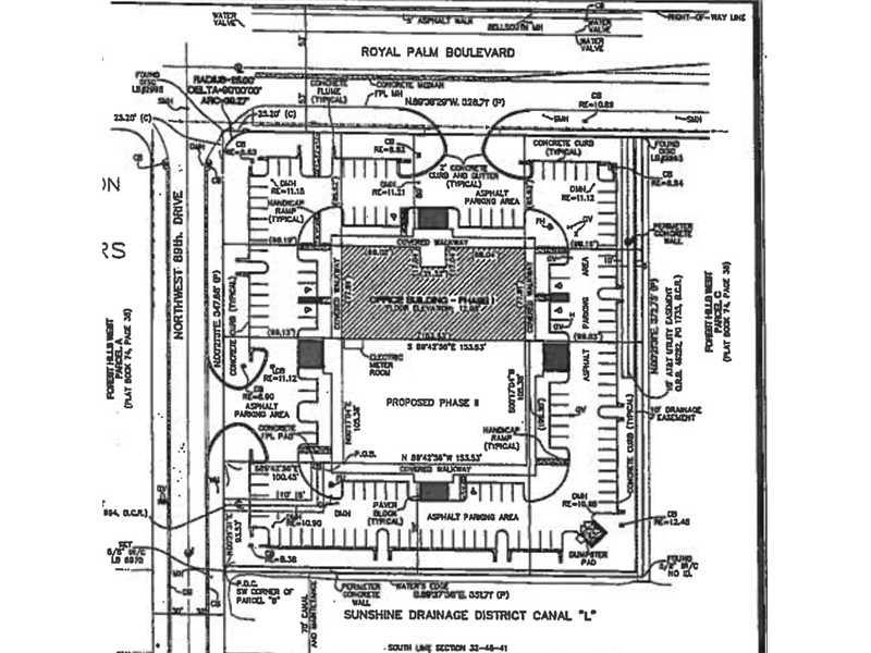 Ready to build! Rare opportunity to develop a 16,176 sqft land Zoned B-1 in a residential area. Adjacent to ~12,000 sqft 8 unit medical office building with 5 owners/tenants. Plans approved by city for construction of a similar ~14,000 sqft medical office condo building. Phase II could be a single larger space or multi unit building. Medical office in the area selling for over $200/sqft. Sold individually or as a package with 2 units in Phase I: 8880 Royal Palm Blvd #105 & #200.