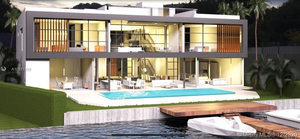 Unique opportunity in Eastern Shores. Oversized 11400 sq. ft. lot with unobstructed water views and beautiful sunset views from your own dock. With direct ocean access within minutes and no fixed bridges, this prestigious guard gated waterfront community will impress anyone who visits. Set of plans approved for magnificent new modern home designed by renowned architect Danny Sorogon are included. Once built, new house will worth over 5M