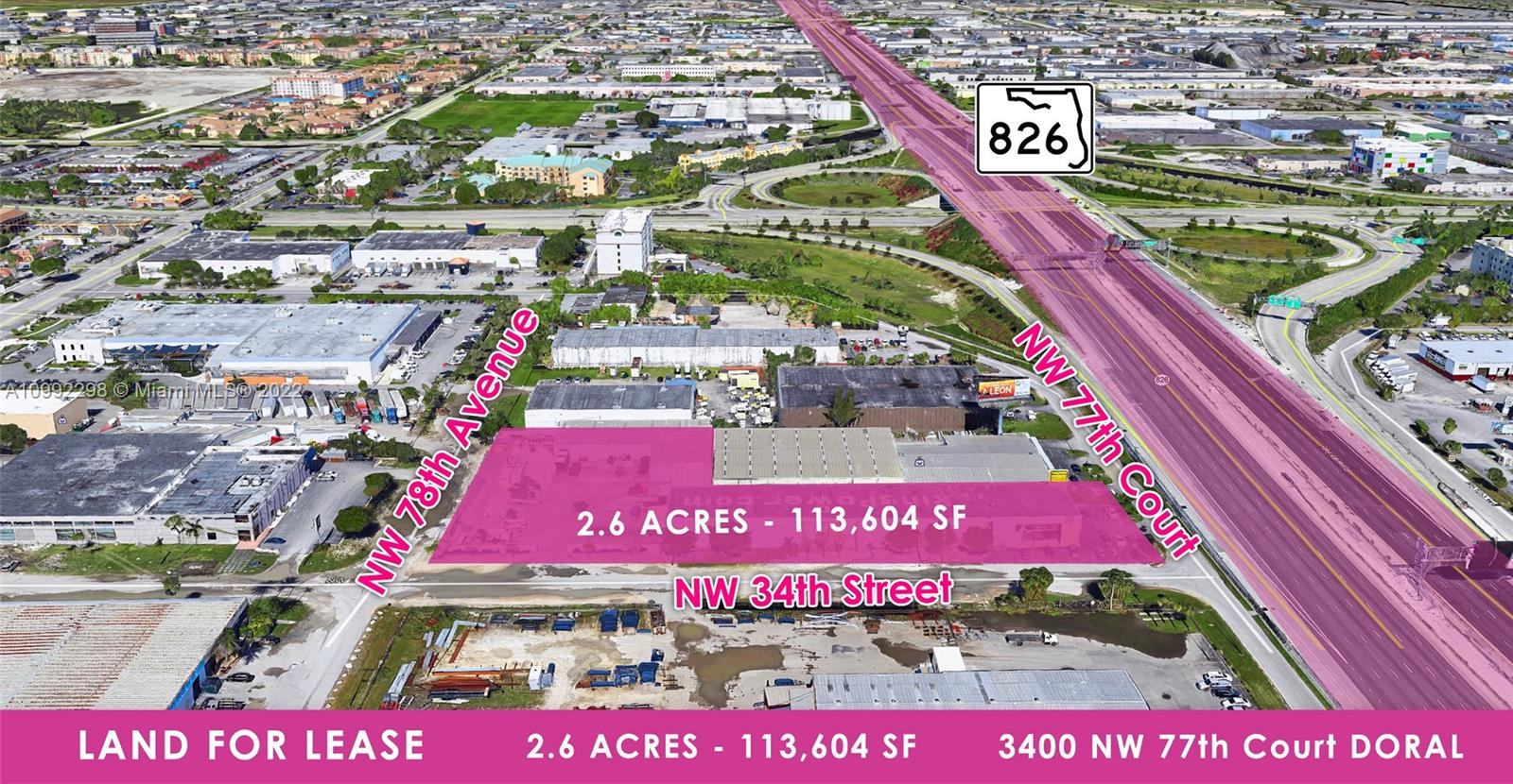 Location, location, location! 0.71 Acres (30,772 SQFT) remain available on this exclusive corner lot of vacant land, fronting SR 826/Palmetto Expressway, offering the most coveted business visibility and signage opportunities. Entrance on NW 77th Ct. The current Average Daily Traffic count on the Palmetto Expressway is 223,000 vehicles per day, and it is expected to increase, as per FDOT. For all questions and showings, please contact Chabeli Castillo