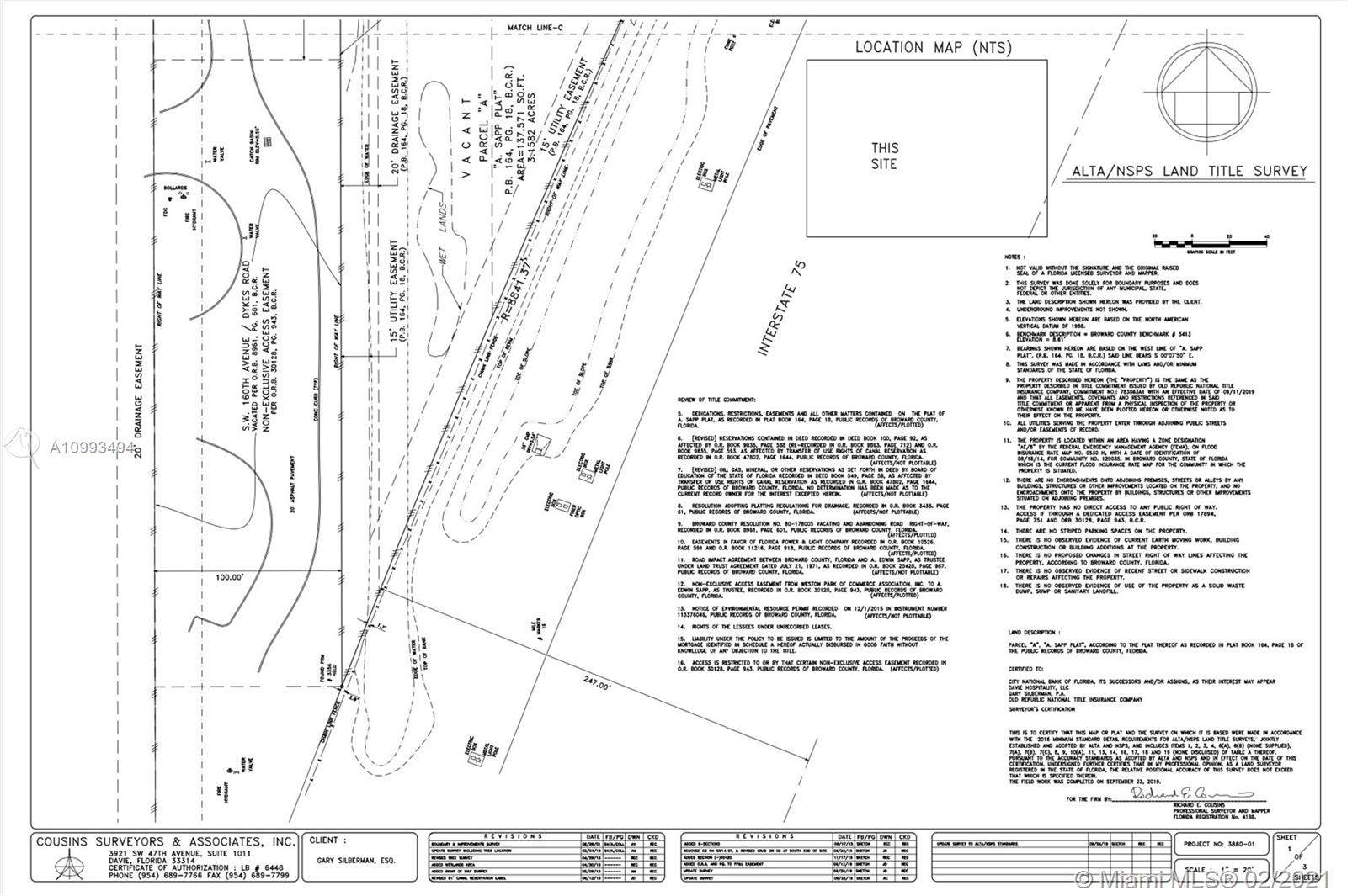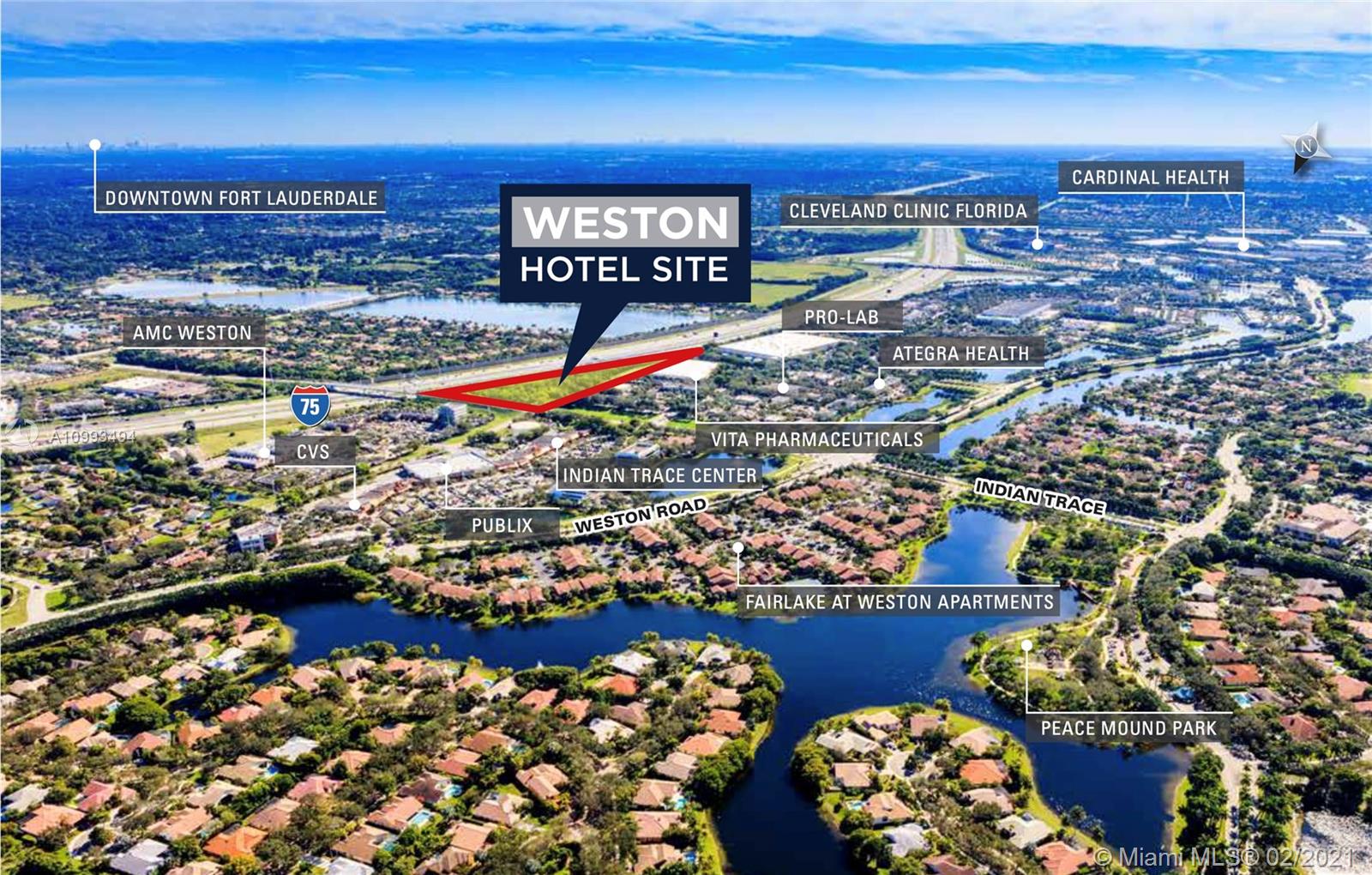 GREAT VISIBILITY FROM I-75, Currently a 3.16-acre site, zoned B3, the Property is fully approved and permitted for the construction of a 152-key hotel but an investor can explore a variety of branding options. The Site is located at the intersection of SW 160th Avenue and SW 14th Street, just over a mile from the nearest Interstate-75 exit and proximate to an abundance of upscale residential communities, 72 holes of premier golf, and the Cleveland Clinic of Florida. The Hotel is designed to be a 5-story building, complete with a third-party leased restaurant and a mixture of surface and mechanical parking spaces. The architectural plans include a 3,650 SF restaurant space on the first floor.