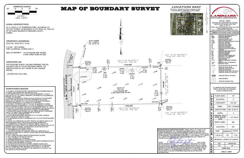 13,467 sq. ft. ( .30 acres ) vacant lot zoned RS-8 in FORT LAUDERDALE! Robertson Park is a developing subdivision of Riverside Park. Not far from this lot Lennar has broken ground on a large townhome project, with a land value of 3.7 million alone. The lot is compliant with all setback requirements based on length/width for a detached single family home. Within the subdivision similar lots have 3/2 houses with pools & lush landscaping. This lot is a blank canvas awaiting the creative mind of a new owner to bring about the home of their dreams. Minutes from downtown & beaches, seconds from I95. Don't miss out on this opportunity! Photos of the home, pool, & guest house are artist renderings that were obtained from seller.