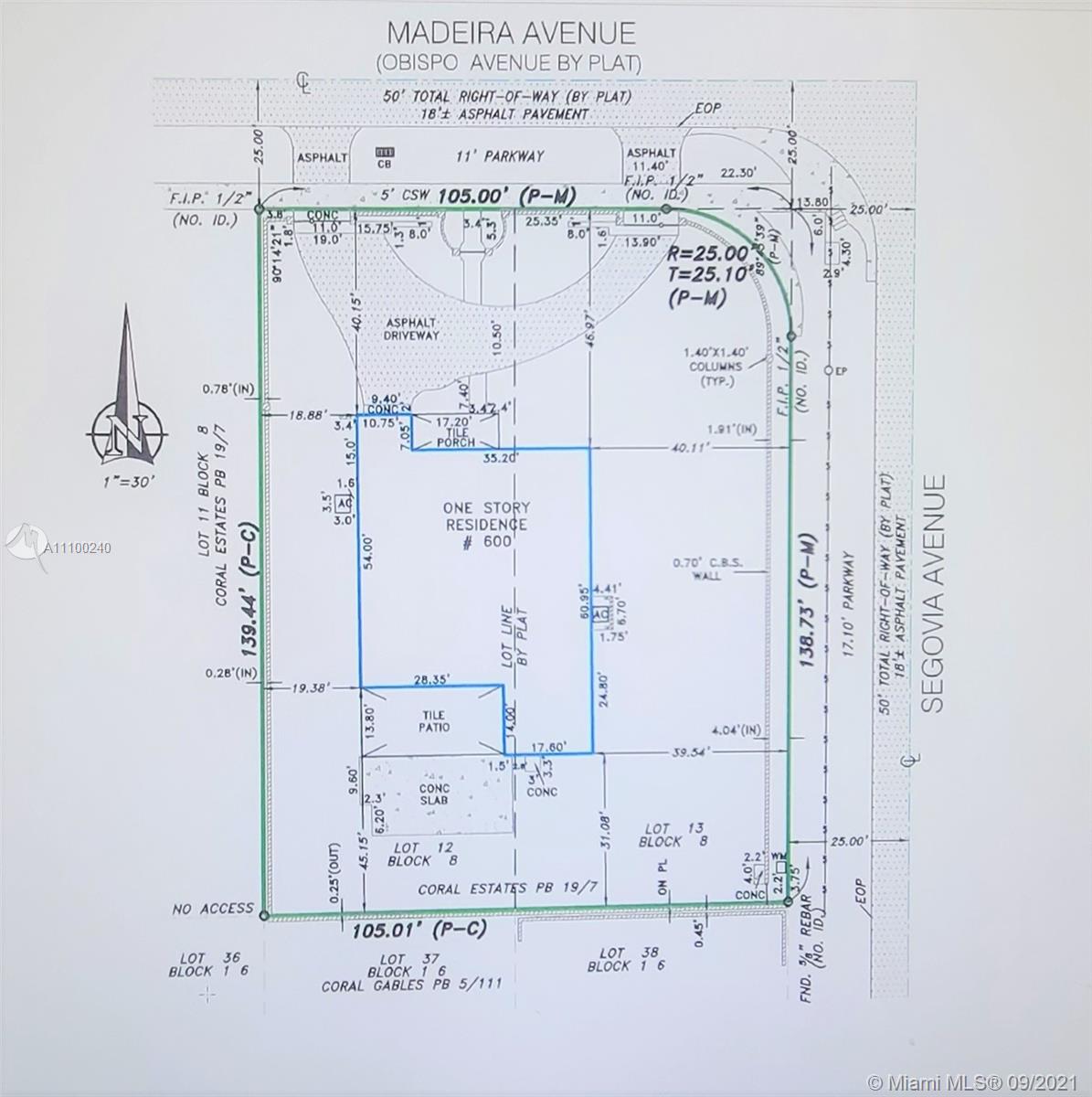 Great Opportunity to build a new construction home! Build your Dream Home on this gorgeous corner lot which totals 14,595 Sf The lot is located in the prestigious city of Coral Gables, close to Miracle Mile Complete Design Development ready for BOA for a 2 story 4,247 Sf residence under A/C Can be built up to a 5,528 SF AC home. Features plenty of space to build large home with pool. Pre Plans 4 B, 3 1/2 baths residence with double height entrance, an amazing stair like a piece of Art, and spectacular internal view to the recreational areas and pool. Gazebo with cabana bath, 2 Garage, terrace. Zoned for SF residence. Underground utilities & sewer already in place ready for connection Currently it has a house for demolition and you can build your custom house you want. Cash only.