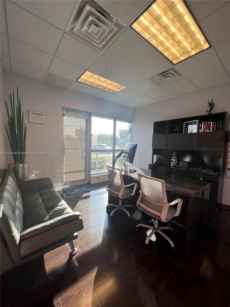 Great location within 1 mile of Walmart, palmetto, turnpike and 836. It's a great space with double entrance. Only 1 of 3 offices on the left wing with store front entrance of internal building entrance as well. Contains a front office and a rear office/conference room with a kitchen area.