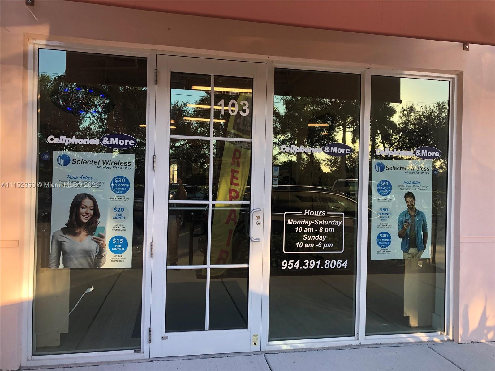 MIRABELLA PLAZA SHOPPING CENTER, NEW (2017), BEST UNIT LOCATION ON 1st FLOOR JUST IN FRONT OF A HEAVY TRANSITED MAIN STREET TO RECEIVE GREAT EXPOSURE, 647 sq ft WITH PRIVATE RESTROOM. ALL FLOOR WITH TILES, HIGH CEILINGS. THIS IS A GREAT SPACE FOR ANY RETAIL, OFFICE OR PROFESSIONAL SERVICE WITH GREAT EXPOSURE LOT OF WINDOWS AND PLENTY OF PARKING. ACTUALLY RENTED UNTIL MARCH 2022. BEAUTIFUL LOCATION, IDEAL FOR YOUR BUSINESS WITH NICE VIEWS. LOCATED TO SERVE MIRAMAR AND PEMBROKE PINES. ANCHORED BY MCDONALD’S AND WALGREEN’S, HOA 272$ MONTHLY, 2021 TAXES 4390$ UNIT LOCATED AT THE MIDDLE OF ALL BUILDINGS AT THE PLAZA.