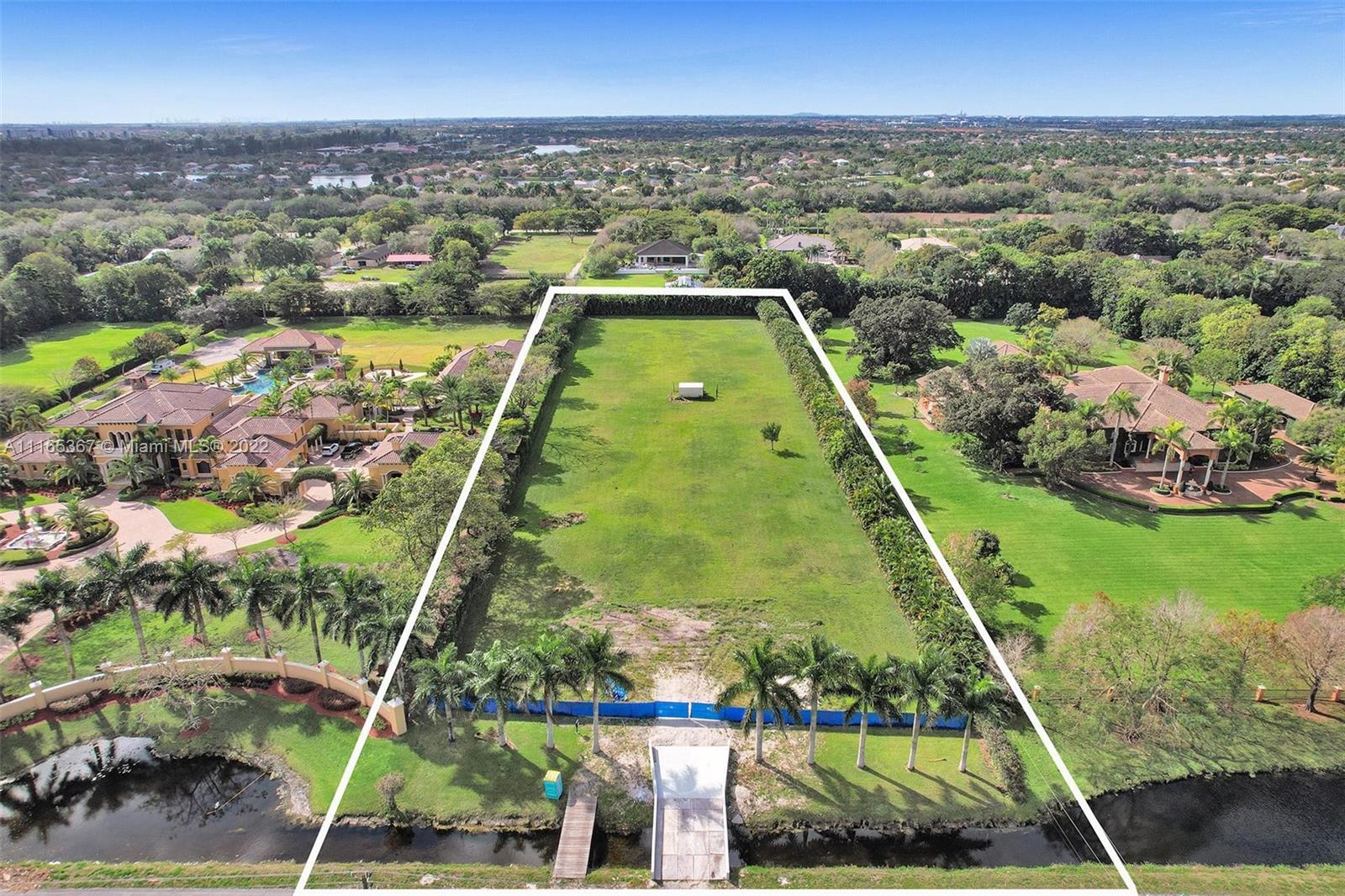 PRIME SUNSHINE RANCHES LOCATION ON MUSTANG TRAIL, EAST OF I-75, AMAZING 2.35 ACRES OR MANICURED WELL MAINTAINED LAND, RECTANGULAR SHAPE WITH LOT DIMENSIONS AREA OF APPROX 165' X 623' PROPERTY FEATURES A CANAL WATERFRONT ALONG THE FRONT LOT DETACHED FROM STREET WITH BRAND NEW PRIVATE BRIDGE ENTRANCE, THIS IS AN IDEAL LOCATION AND SET UP TO BUILD YOUR DREAM HOME WITH PLENTY OF YARD SPACE TO ADD ALL DESIRED FEATURES INCLUDING GUEST HOUSE, TENNIS/BASKETBALL COURTS, STABLE, HORSES, RV-GARAGE & MORE. READY TO BUILD, CLEANED LOT, ALL LAND REFILLED AND CITY PERMITS APPROVED. ARCHITECTURAL PLANS AVAILABLE. SURROUNDED BY SPECTACULAR MULTIMILLIONAIRE ESTATES. AVAILABLE NOW. DON'T MISS THIS INCREDIBLE OPPORTUNITY.