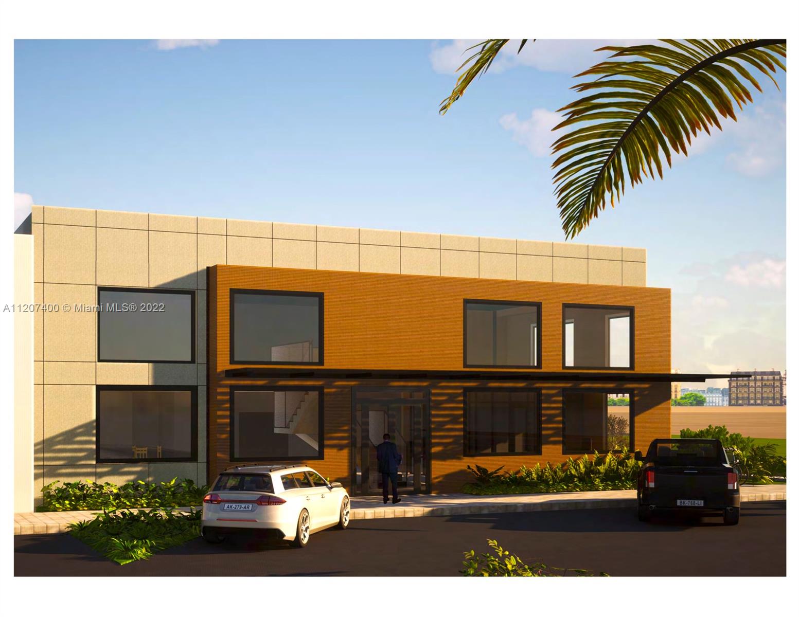 SITE PLAN APPROVED - Pre-Fabricated Steel building. 7,560 SF Interior. Exterior clad with finished corrugated metal panels that align to be continuous with roof. The building has been designed to house a showroom, conference room, office, kitchen, 2 ADA compliant bathrooms and a warehouse. The building will have a 2nd story mezzanine that will be used for storage. All openings indicated will be large missile impact rated windows and doors as approved by Miami-Dade standards. Parking is provided to comply with city requirements. The scope of work will include normal mechanical, electrical and plumbing. Flooring will be of a polished concrete throughout, except for the 2nd floor storage. That will be of a finished material. Ample vegetation is provided to comply with all city requirements.