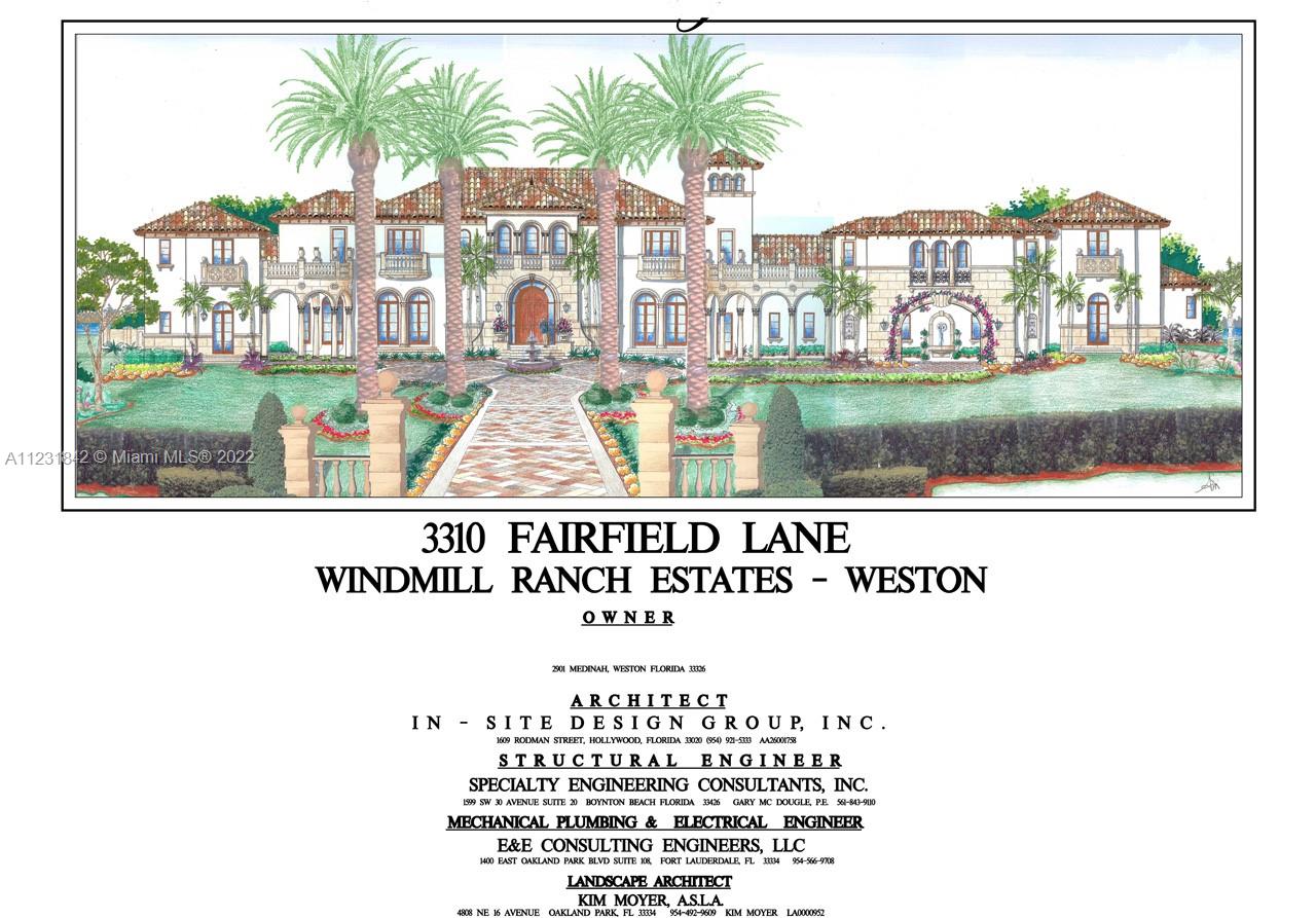 A True Trophy Property! Spectacular 3.76 acre residential lot in Windmill Ranch Estates, one of the most exclusive luxury enclaves in West Broward, and all of Southeast Florida. This over-sized vacant lot represents a VERY RARE opportunity to own such an expansive tract of land within the most coveted gated community in Weston, one of the most desirable and accessible cities in the region. The lot is provided with a favorable southern orientation and an impressive 750 feet of lake frontage. Plans for a stunning 15k SF med estate by InSite Design Group are readily available, and LANDMARK CUSTOM HOMES OF BROWARD is ready to consult and assist and expedite planning, budgeting and construction of your dream estate home.