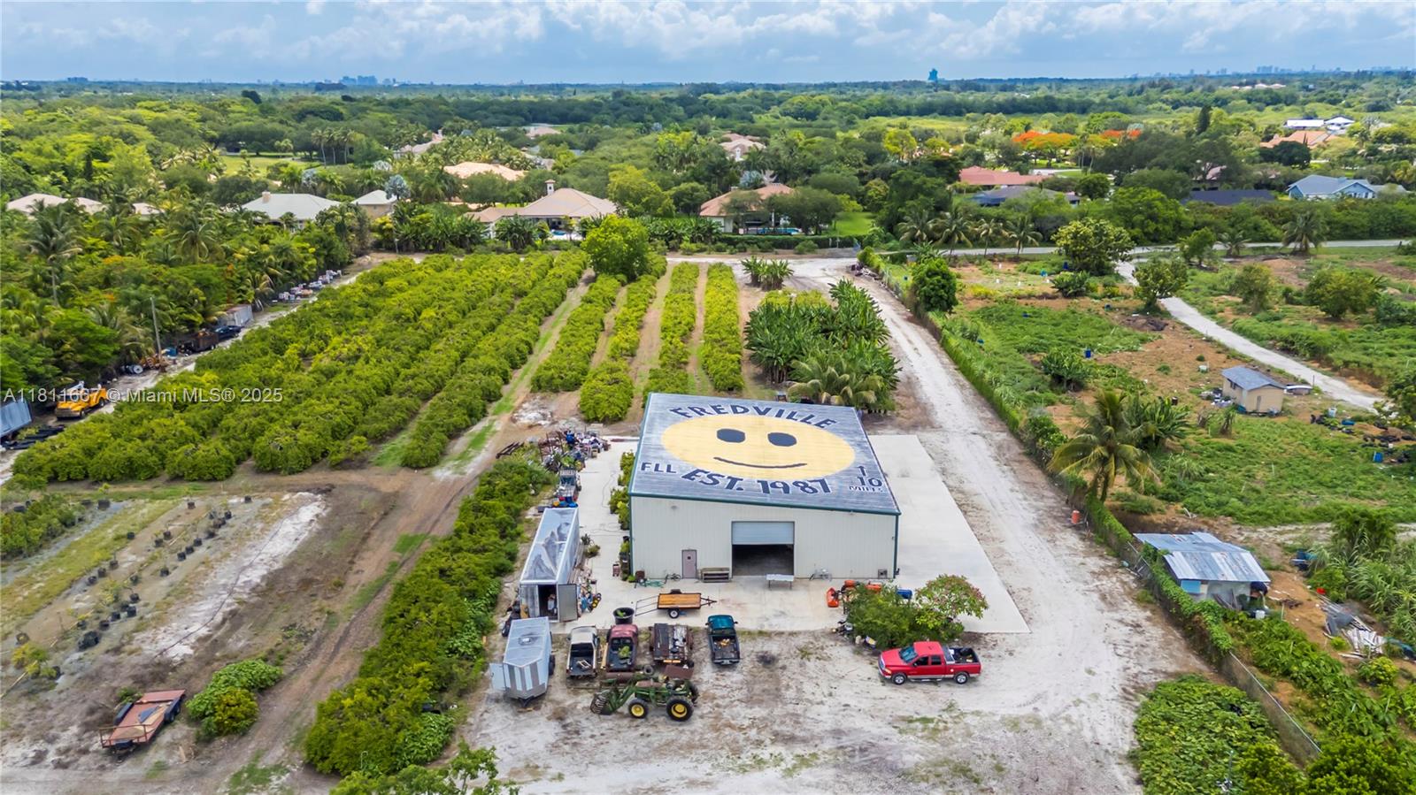 8.9 Acres!! Unique property in Davie surrounded by million-dollar homes in a fast-growing, family-friendly area with "A" rated schools. Fronts Flamingo Rd, backs Flamingo Gardens, and borders the gated Ridge at Laurel Oaks. Fully fenced with gated access. Operating tropical fruit grove since 1987 with ~1,000 starfruit trees and other varieties (macadamia, avocado, banana, etc.). Features include a 5" well, advanced irrigation, and a 4,800 sf insulated steel building (Cat 5+ rated) with 1,140 sf A/C space, 2 kitchens, 2 baths, and 3 offices. Industrial features: mezzanine, 800A power, racking, security system. Includes prepped 1-acre homesite for a 4,000 sf home. Ideal for family compound, agribusiness, or investment. Agriculturally assessed, very low taxes.