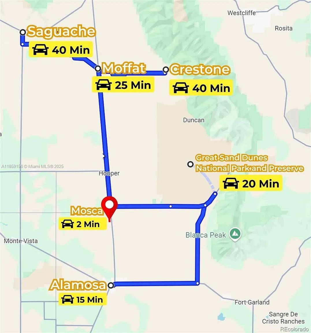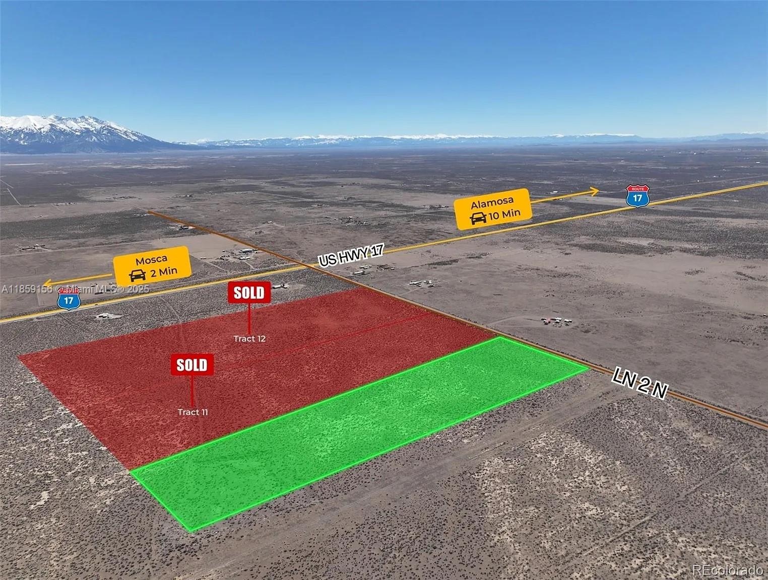 PROPERTY NEAR LAST ELECTRICITY POLE, WELL, AND COUNTY-MAINTAINED ROAD ACCESS (LANE 2 N) ON 35.01 ACRES – 10 MIN FROM ALAMOSA, 2 MIN TO MOSCA! Includes 25 GPM well permit, driveway with address, full survey (6 monuments), and electricity scheduled Q3 2025. No HOA, easy permits. Well serves 3 homes + 1 acre irrigation – ideal for horses, cattle, or gardens. Water augmentation available. Flat, build-ready land for stick-built, modular, or sustainable homes like Hempcrete. Naturalia Construction can install septic (~$20K/4BR) and manage your build. Location perks: gas, groceries, USPS in Mosca; airport, Walmart, hospital, and university in Alamosa. Near Great Sand Dunes, hot springs, skiing, rafting, and new Stargazing Resort. Stunning 360° views and prime development potential!