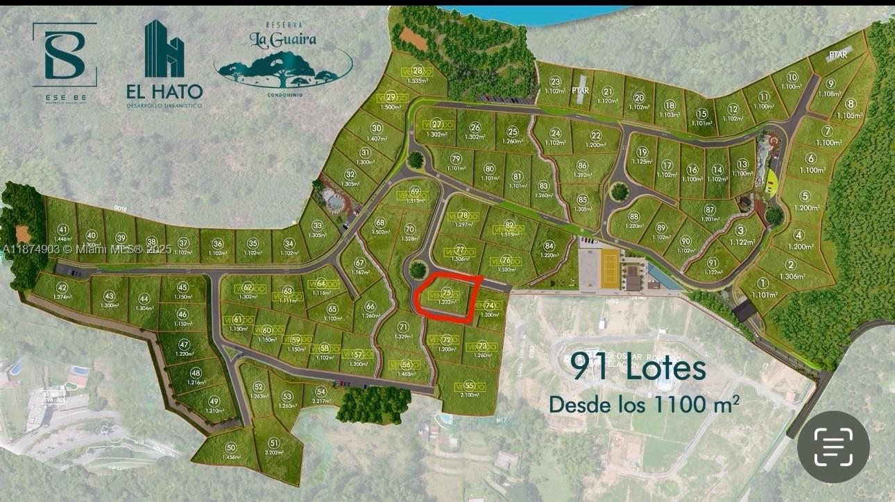 The Reserva La Guaira new Project . Consists of 91 urbanized lots for residential use, either as a primary or secondary home. • Copy of the public deed of the condominium bylaws. • Copy of the urban and construction license for the condominium. • Over 1,500 meters of walking trails. • 1 hectare of native forest. • 2 rock garden areas with seating and landscaping. • 800 meters of boulevard with bike path, green areas, and sidewalks. • Clubhouse. • Tennis court. • Main swimming pool. • Children’s pool. • Gated entrance. and more... Lot for Sale: Number 75 • Location: Palestina, Caldas – Santágueda area, a popular vacation destination. • 30 minutes from Manizales. • Approximately 2 hours and 40 minutes from Medellín. • 1 hour from Pereira.