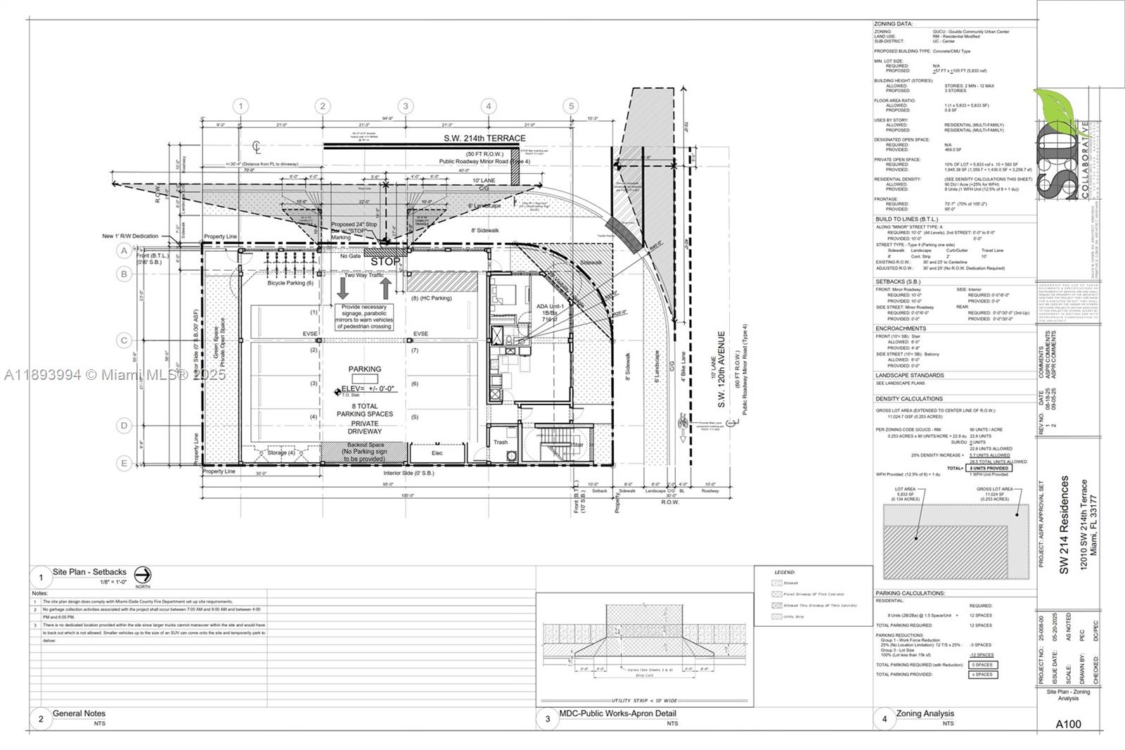 100% SITE PLAN APPROVED PROJECT. 8 all market rate units (can be sold as individual condos if desired) of 2/2's with 8 parking spaces. 8 inch water line/ 12 inch sewer abutting property and ready to connect no costly extensions needed. 2nd option for 25 units / 6 stories was approved in pre-app with the planning department if the buyer is interested. Blocks from the $1 billion redevelopment project Southplace City Center a "city within a city," featuring 5,000 residential units, 500,000sqft retail, and a hotel. A lot of development in planning within two blocks (see photo). Not in a flood zone. Please email me for a copy of the full site plan, but floor plan and elevations are provided in the attachments. LOWEST PRICED PER SQ FT FOR THIS ZONING IN 33177 or 33170.