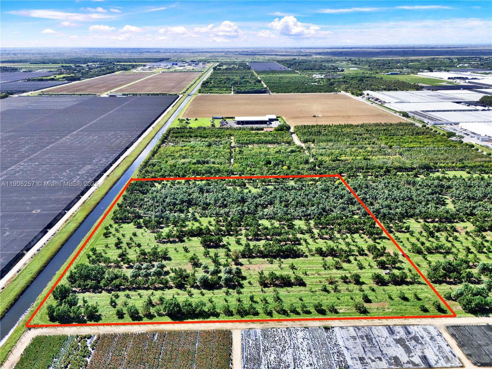 Owner financing is available with great terms. Discover this exceptional canal-front avocado grove on 8.81 acres in the heart of South Dade’s agricultural zone. The property features a full sprinkler irrigation system, is completely fenced, and boasts direct canal access — ideal for agri-use, investment, or a private estate retreat. Mature avocado trees are thriving, the grounds are professionally maintained, and the infrastructure supports both production and lifestyle potential. Rare opportunity combining canal-frontage and grove-income potential. This property can be sold together with folio 30-6833-000-0031—endless possibilities with 13.9 acres in total for sale.