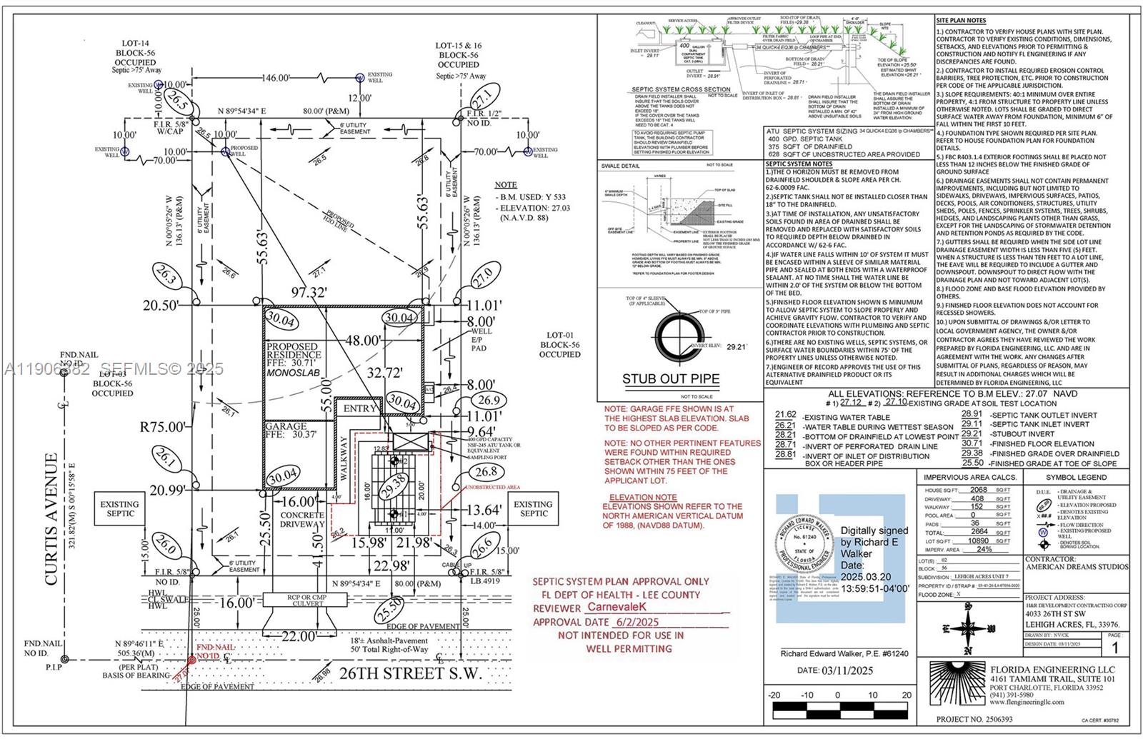 The survey has already been completed, and a model plan has been approved, so it is READY to build the property. Located in a rapidly growing area, these properties present an excellent investment opportunity. The 33976 zip code is the most popular in Lehigh Acres. Spanish is also spoken in the area. They are close to Southwest Florida International Airport, Fort Myers beaches, I-75, SR 82, shopping centers, medical services, schools, restaurants, JetBlue Park, and more. What truly sets this property apart is that it includes advanced planning and development work for a contemporary style home, saving the buyer months of paperwork, upfront costs, and administrative risk. The package includes: Complete architectural design for a contemporary 2,068 sq ft home with 3 BEDROOMS, 2 FULL BATHROOMS, and a 2-CAR GARAGE + Completed topographic survey, ready for immediate use + Approved floor plans, ready to proceed with final permitting + Approved SEPTIC SYSTEM design, including the AEROBIC TREATMENT UNIT, meeting all current county requirements. No trees to remove. Compared to other raw lots in the area, this parcel offers substantial savings in technical studies, engineering, design work, and permitting time, which fully justifies its higher market value. This property is READY to build. Located in a rapidly growing area, 33976 is one of the most sought-after areas in Lehigh Acres.