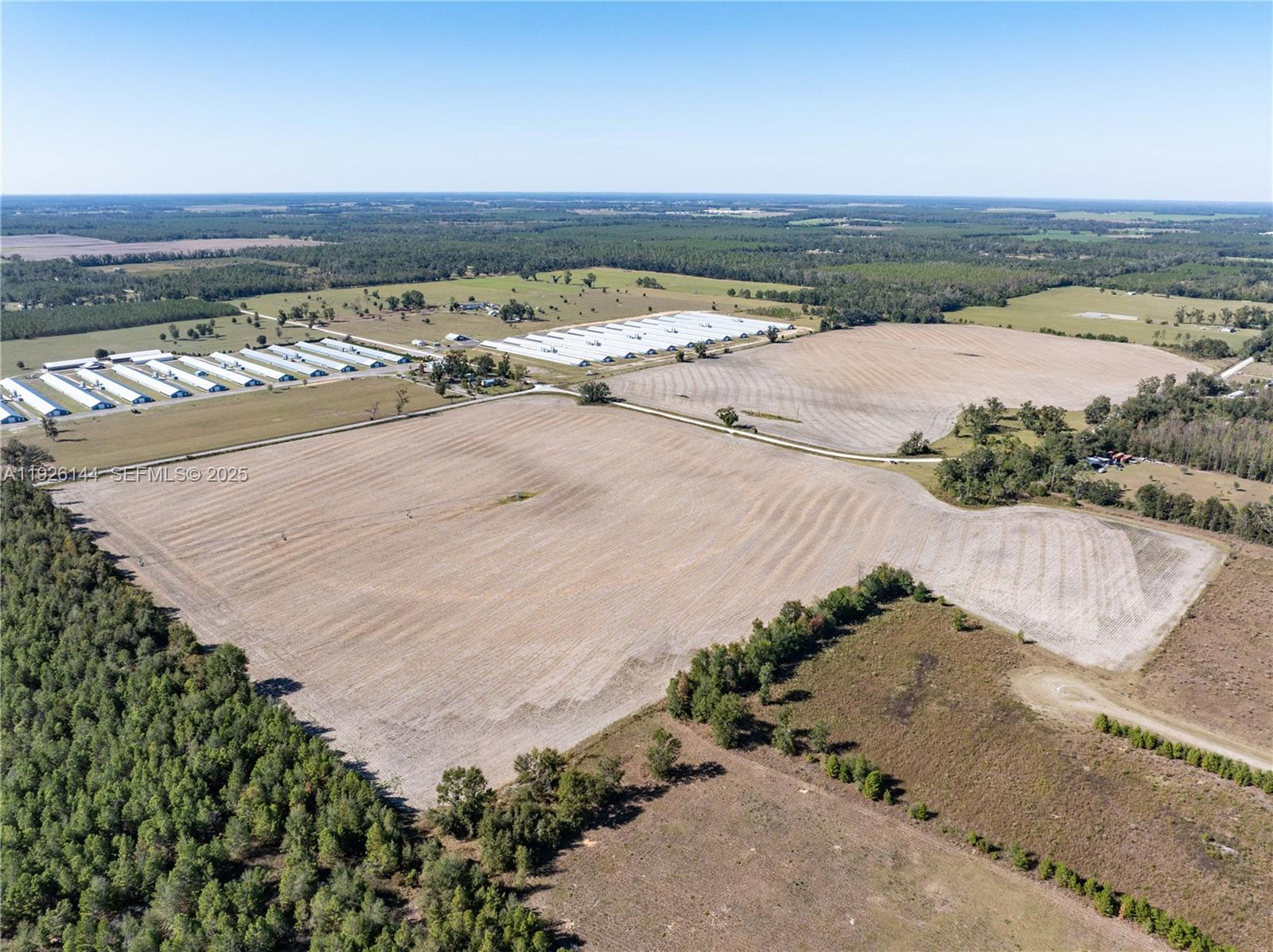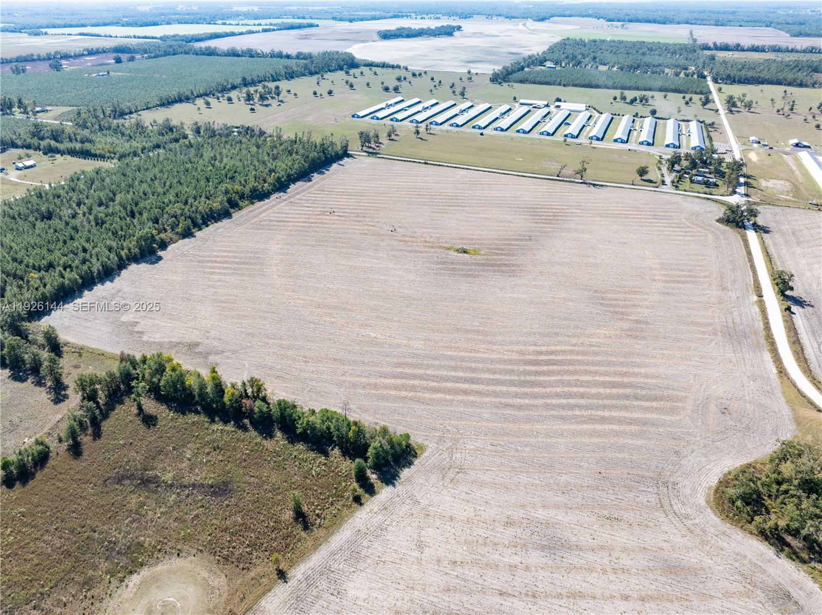 Commercial farmland composed of 180-ac. and 103-ac. irrigated cropland tracts. The 180-ac. tract is composed of irrigated cropland (138 ac. +/-), cleared planted pines and woodland (27 ac. +/-), and dry corners (15 ac. +/-). A 7-tower center pivot system, a 10-inch-diameter irrigation well, and 100HP pump. The 103-ac. tract is composed of irrigated cropland (75 ac. +/-), non-irrigated cropland (19 ac. +/-), dry corners (5 ac. +/-); and former building site (4 ac. +/-). Two nearly new 3-tower center pivot systems, an 8-inch-diameter irrigation well, and a submersible pump. The farm is leased until December 31, 2025.