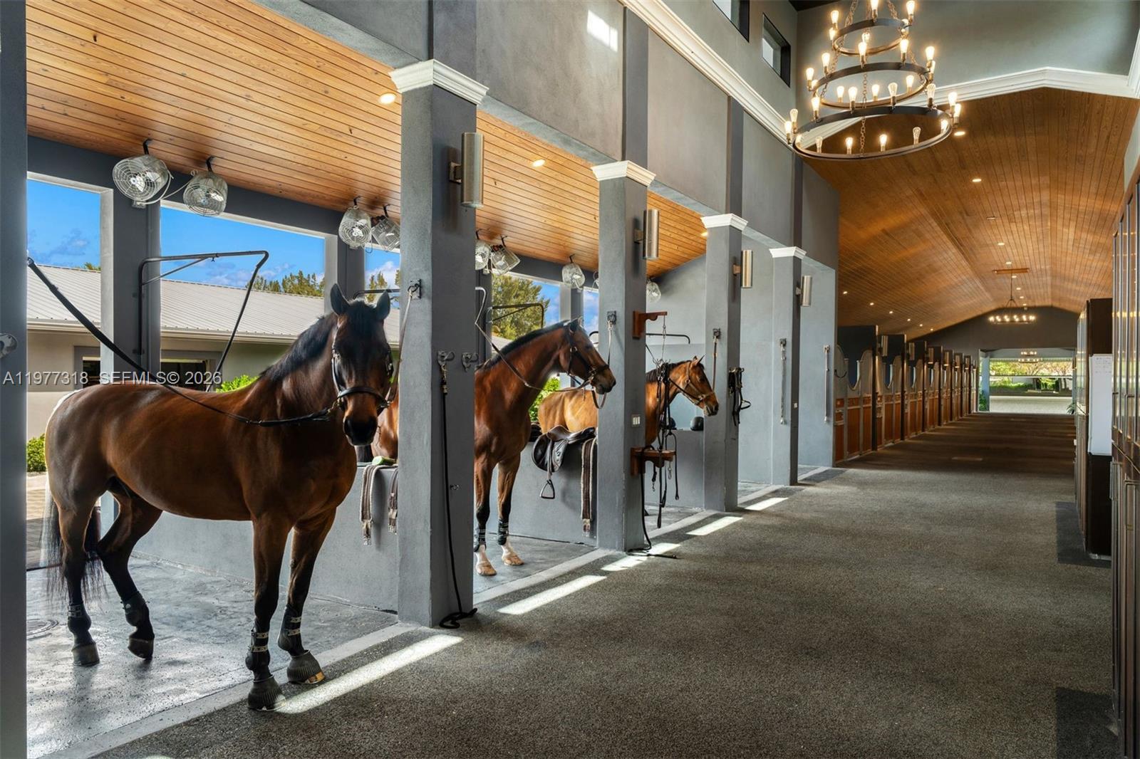 When only the best will do! This is not just an equestrian property — it’s a world-class show barn designed for riders operating at the highest level of the sport. The 5-acre gated facility offers longevity & elite performance just 40 minutes from Miami, 1 hour from Wellington & 30 minutes from Fort Lauderdale Beach. The concrete barns feature 38 Rower & Rub stalls with premier footing, Nelson automatic watering systems, 24-hour surveillance & 10 run-outs. There are 7 oversized, irrigated grass paddocks with permanent concrete run-in sheds & fans for year-round comfort. Broward County’s largest covered indoor arena (100' × 200') is complemented by a sprawling (175' × 275') outdoor arena, along with professional dressage mirrors, a hot walker, treadmill & dry treadmill. All stalls connect to a full underground drainage system designed to eliminate flooding. A 3-story luxury clubhouse overlooks the arena and includes indoor/outdoor viewing areas, management offices, a bar, feed room, laundry room & a beautifully appointed tack room. Above is a 2-bedroom, 2-bath apartment ideal for a trainer or owner, plus a separate 3-bedroom staff apartment & full grooming facilities. Direct trail access connects to Vista View Park and the Florida Trail network, and the property is conveniently located near American Heritage School. New Price!
