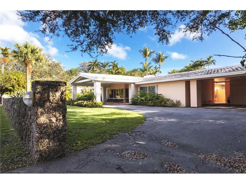 Trophy property in prestigious South Coconut Grove on a no-traffic street. Home with exquisite floor plan and French doors leads to pool and massive 25,000 sq ft private back yard. This home is high above sea level on a ridge and does not require flood i nsurance. Update existing house or build your dream home. Trophy property in trophy location! Neighborhood features private police patrol.(Potential to subdivide this lot 115 wide X 216 deep)