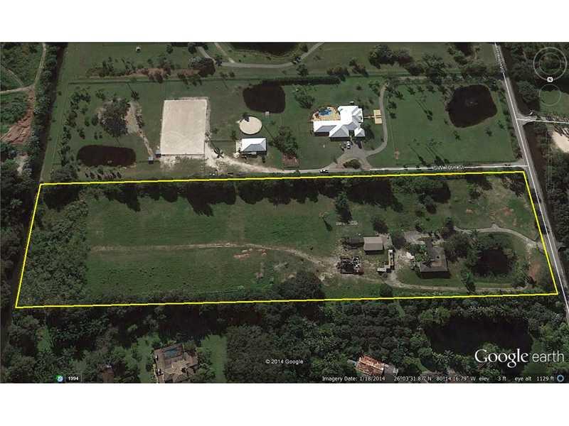 10 ACRES M/L ( WITH CITY WATER/SEWER OUT FRONT) NOW BEING USED AS PASTURE. THERE IS A HOME IN POOR CONDITION, SO IT IS PRICED AT LAND VALUE ONLY! THE 6 STALL BARN IS IN PRETTY GOOD SHAPE. PROPERTY CAN BE USED AS A PLANT NURSERY, TREE FARM, EQUESTRIAN FACI LITY, SECLUDED ESTATE, OR MAY BE DIVISIBLE INTO 9-10 LUXURY HOMESITES. WITHIN 2 MILES OF EXPRESSWAYS, NOVA SOUTHEASTERN UNIVERSITY, BROWARD COLLEGE AND THE MIAMI DOLPHINS TRAINING FACILITY.