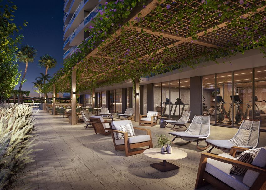 • Indoor and outdoor state-of-the-art fitness center with cardio and weight machines, private locker rooms, and a yoga studio with a virtual trainer