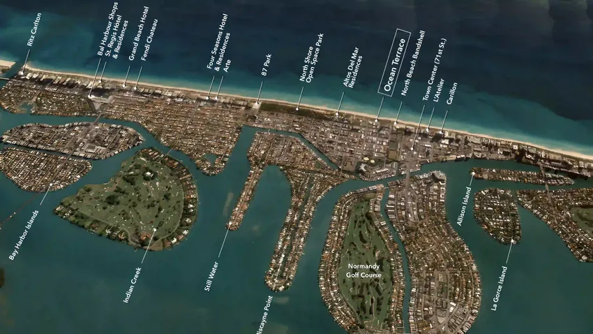 El complejo se ubica en 740 Ocean Terrace, Miami Beach, FL 33141, en el prestigioso barrio de North Beach, entre el Océano Atlántico y la Bahía de Biscayne. La zona es famosa por su atmósfera tranquila, parques exuberantes e infraestructura peatonal, manteniendo al mismo tiempo privacidad respecto al bullicioso ambiente turístico de South Beach.