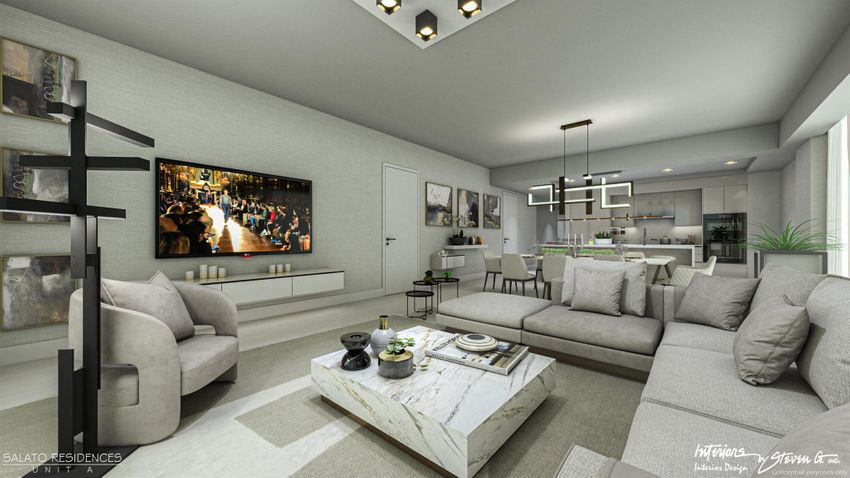 Las residencias cuentan con planos de planta abiertos con amplios espacios de vida y terrazas espectaculares de 14 pies de profundidad. No hay nada casual en Salato. Cada detalle de diseño, cada elemento material, cada servicio y cada amenidad están cuidadosamente considerados y ejecutados para armonizar entre sí.