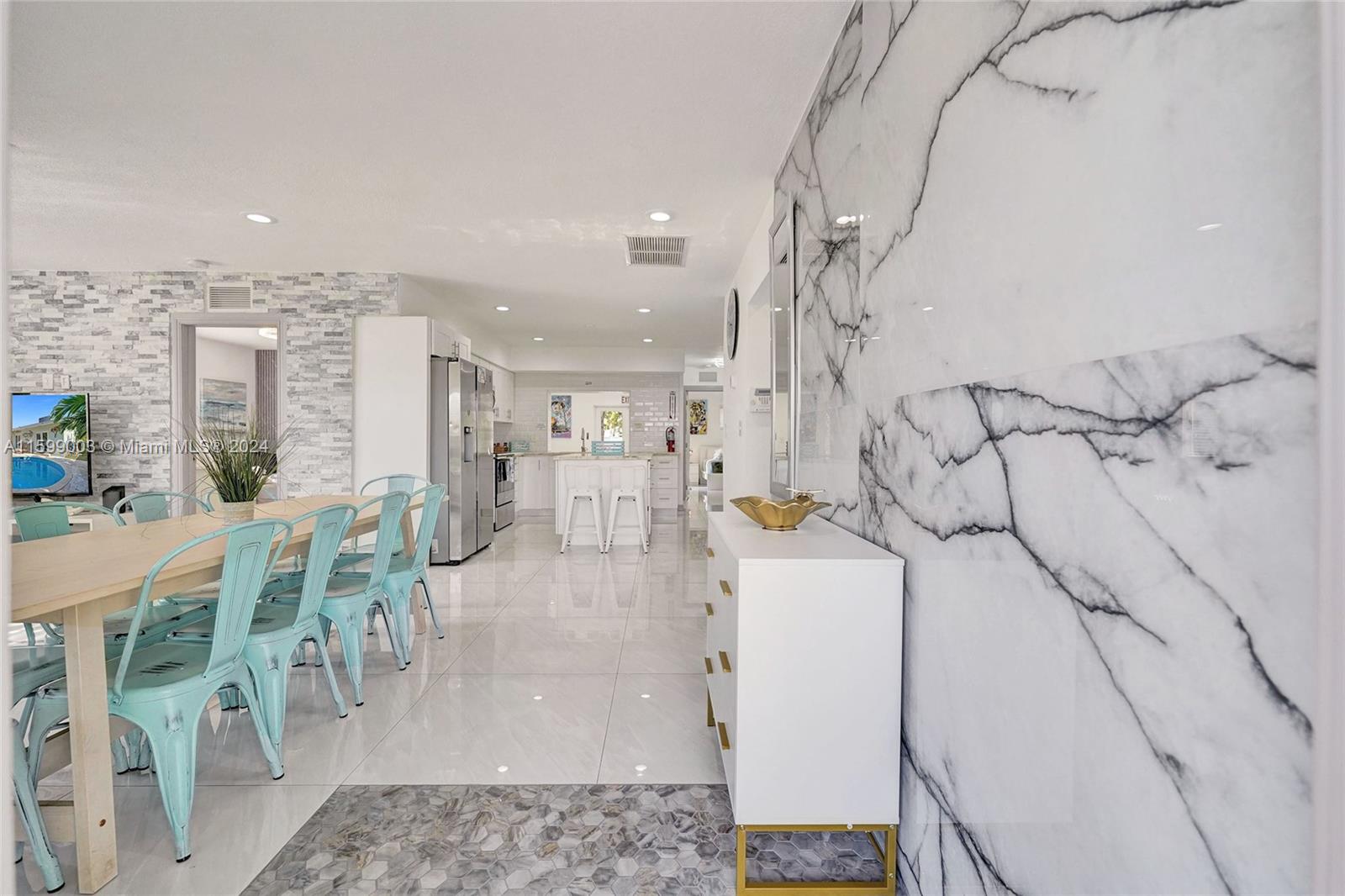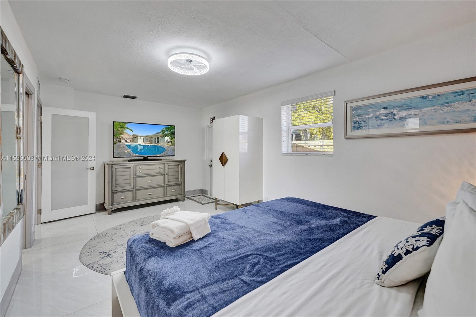 Step into this amazing home that features Modern Art throughout. Completely Renovated with new stone walls, porcelain floors and modern design. Completely Furnished. 5 Bedrooms with 3 Full Bathrooms. 3 King size beds, 2 Queen Size beds, 1 full bed, Sofa Bed in the main living room and a Futon in the family room. Plenty of space for a big family or resort style living. Beautiful Back yard with a Heated Pool and Jacuzzi. Tiki Hut with sitting area and table. Lush Landscaping around the entire property. Very private and quiet. Plenty of parking for 3 or more cars. Please text listing agent for showing instructions. Can be rented long term or short term. Call for short term pricing.