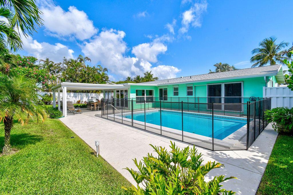 Available Dec 2025, Jan+May 2026 for weekly, monthly, seasonal or annual rental. A piece of paradise in quaint Juno Beach. This single family, three bedroom, two bathroom, pool home is a short 2 block stroll to the pristine beach and Pelican Lake, conveniently located to numerous golf and tennis facilities. This residence is perfect for entertaining and the perfect place to enjoy a tropical lifestyle. The elevation and large homesite enhances the flow of air and allows the ocean breezes and fresh smell of salt air to penetrate the home. Following a day at the beach you can enjoy your spacious backyard and swimming pool. This single story home sits high on the ridge overlooking a beautifully landscaped lawn with a circular drive.