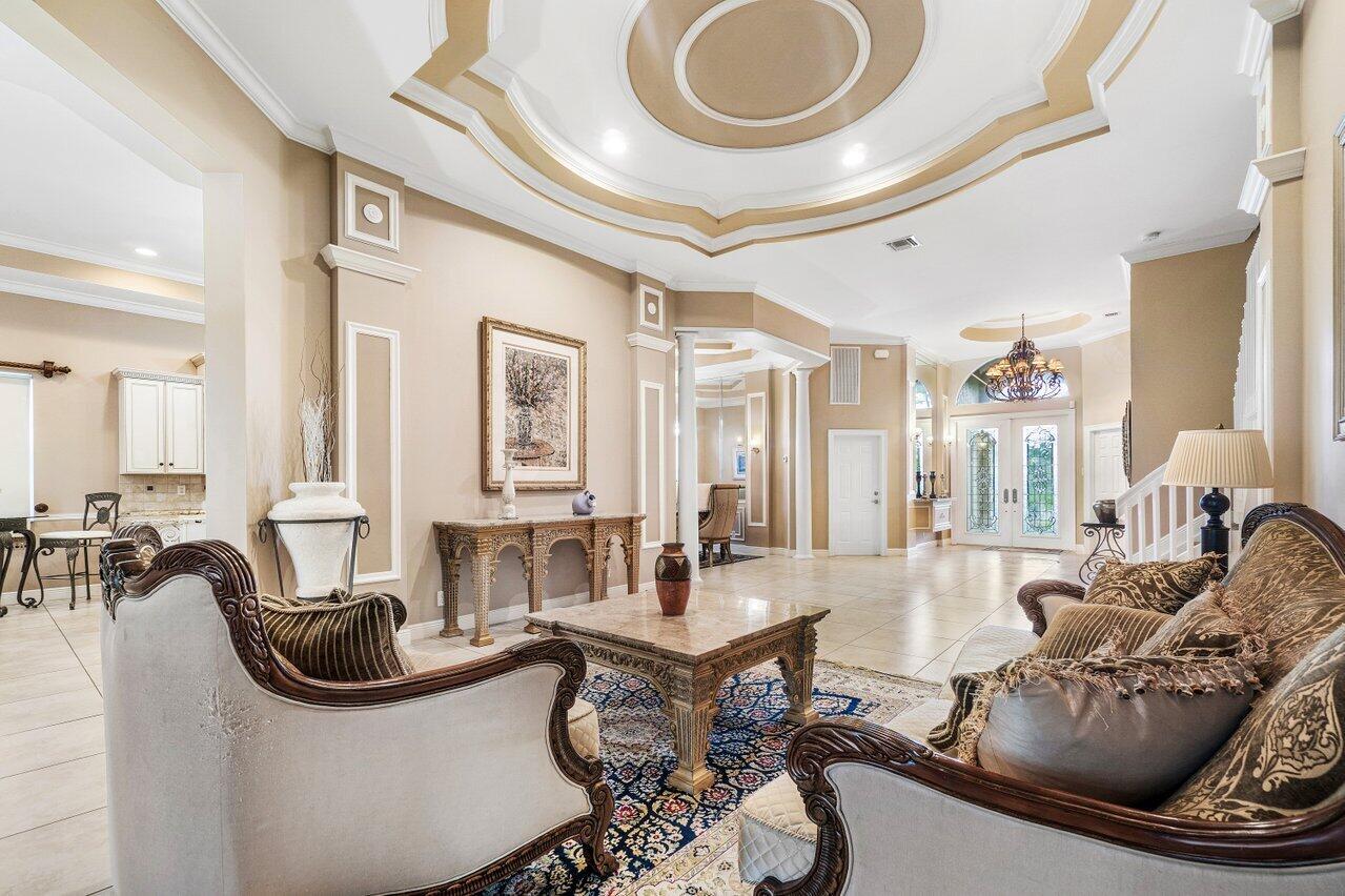 Welcome to your dream home in the heart of unincorporated Palm Beach County! This luxurious estate boasts 4 bedrooms, 5 baths, and an ideal blend of space, privacy, and elegance. The main house features 3 bedrooms, 4 baths, and a versatile office, while the detached 1-bedroom, 1-bath mother-in-law suite offers the perfect private retreat for guests or extended family. Step inside the main house to find a bright and inviting living room with large windows that flood the space with natural light. Custom moldings and elegant shadow boxes on the walls and ceilings add a touch of sophistication. The open-concept gourmet kitchen is a chef's dream, complete with stainless steel Sub-Zero-style appliances, granite countertops, a gas stove with a convenient pot filler, and a seamless fl