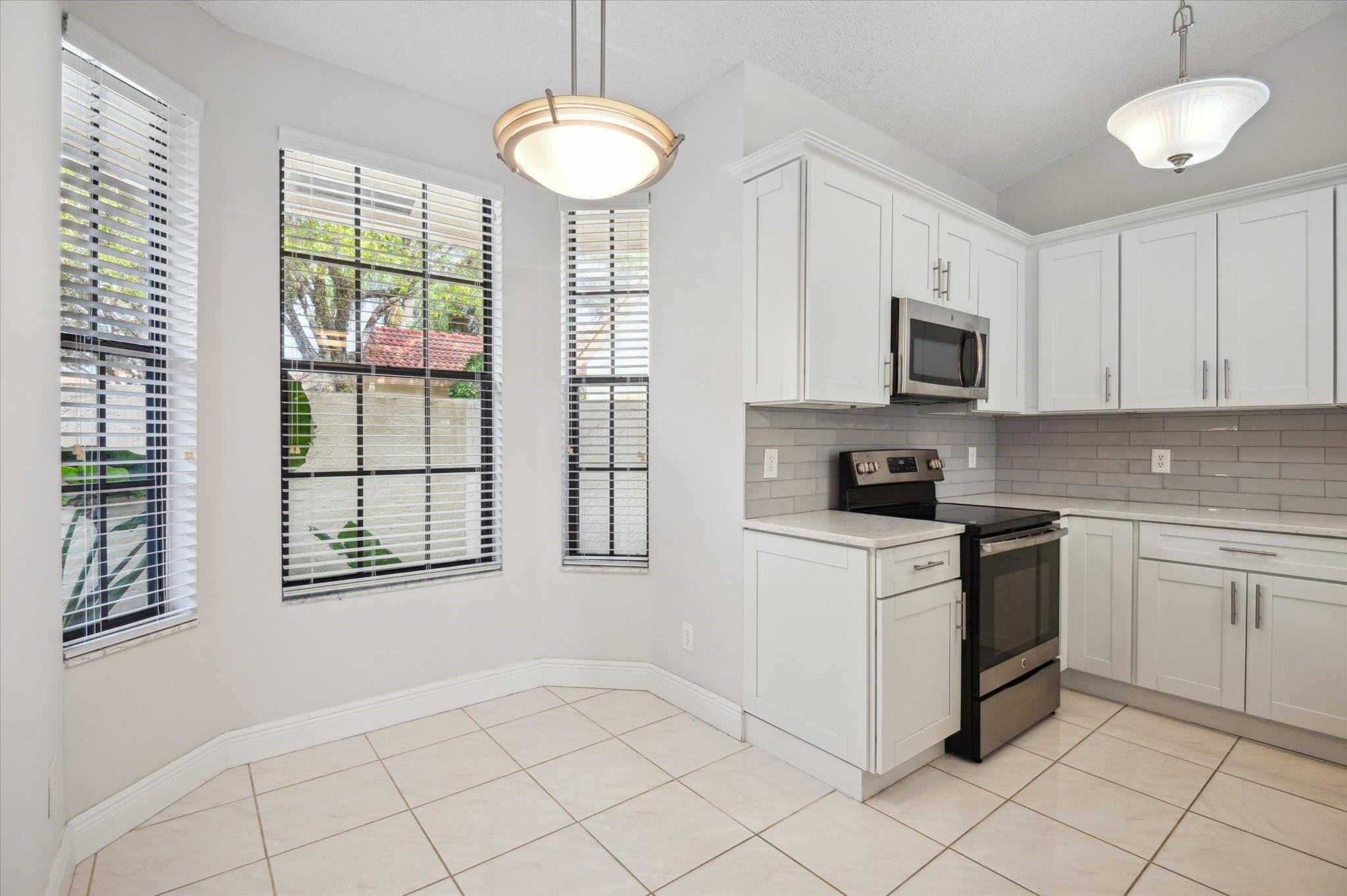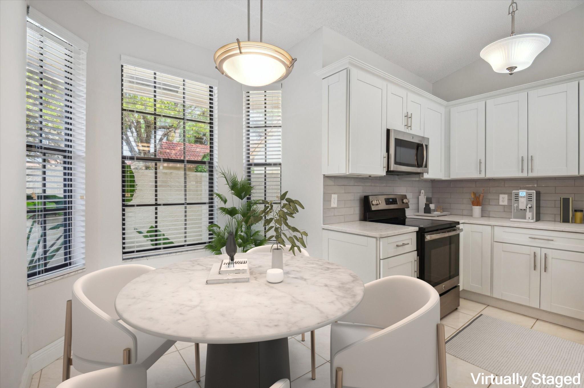 Beautifully renovated sun-drenched 2 bedroom, 2 bathroom villa in The Harbours at Aberdeen. Private end unit blends luxury & privacy. White custom kitchen cabinetry, quartz countertops, newer Stainless Steel appliances. Primary suite features custom closet, stylish built-in dressing area w/ marble counter top & vessel sink, beautifully updated bathroom with skylight for natural lighting. 2nd bathroom fully updated, tub with handheld shower, marble countertop & additional storage. Wood blinds throughout. Glass enclosed A/C lanai, accessible from primary bedroom & living room, provides additional living space. 2021-installed A/C unit, water heater installed in 2019, washing machine 2022. 55+ community offers exceptional amenities, community pool, fitness center, pickleball and tennis courts.