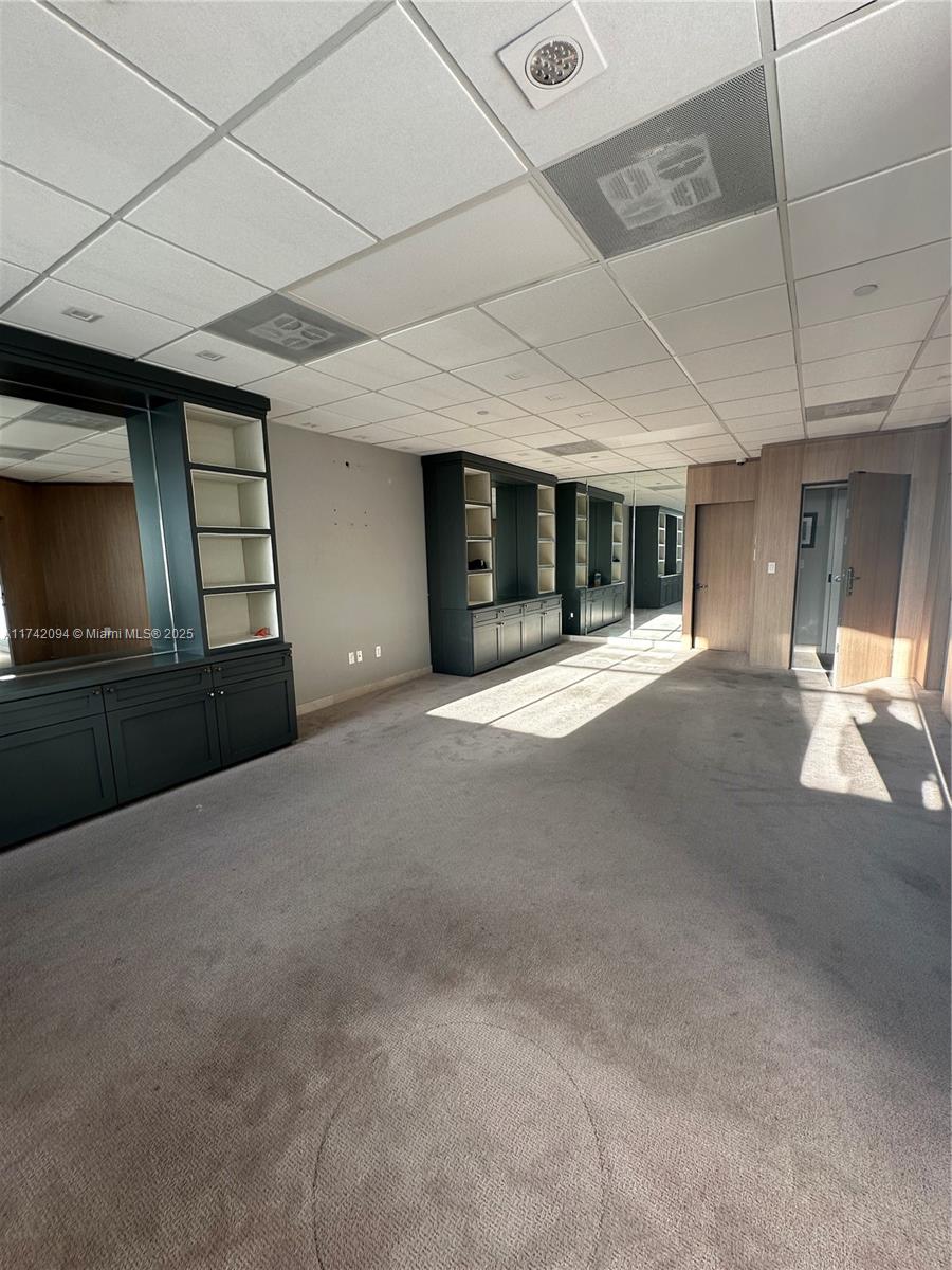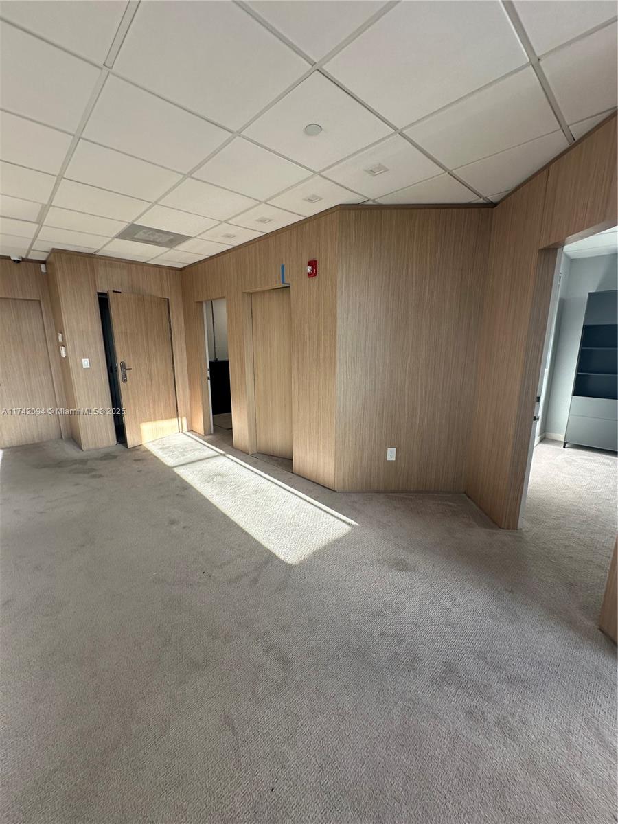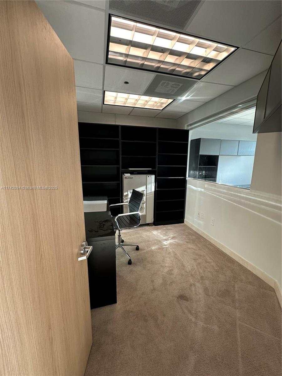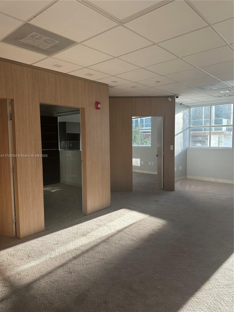 Large unit completely remodeled with wood paneling. Three offices with lots of light and windows. A large open working space. There is a kitchen. Vault door, safe in on of the office. Camera security and unit with a sophisticated security system. Partially furnished. Crema marfill marble floor below carpet. Two assigned parking and numerous guest parking. Hallways newly renovated. Brand new modern elevators and building completely painted a year ago. On Site management.