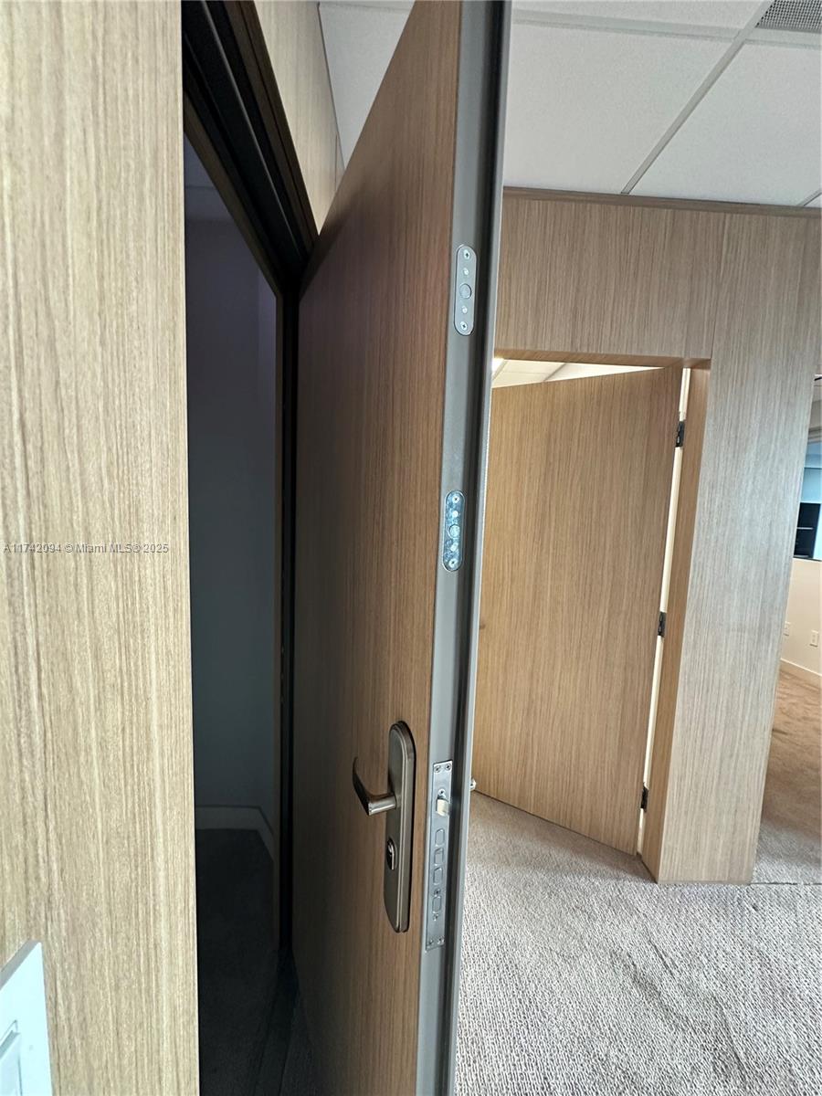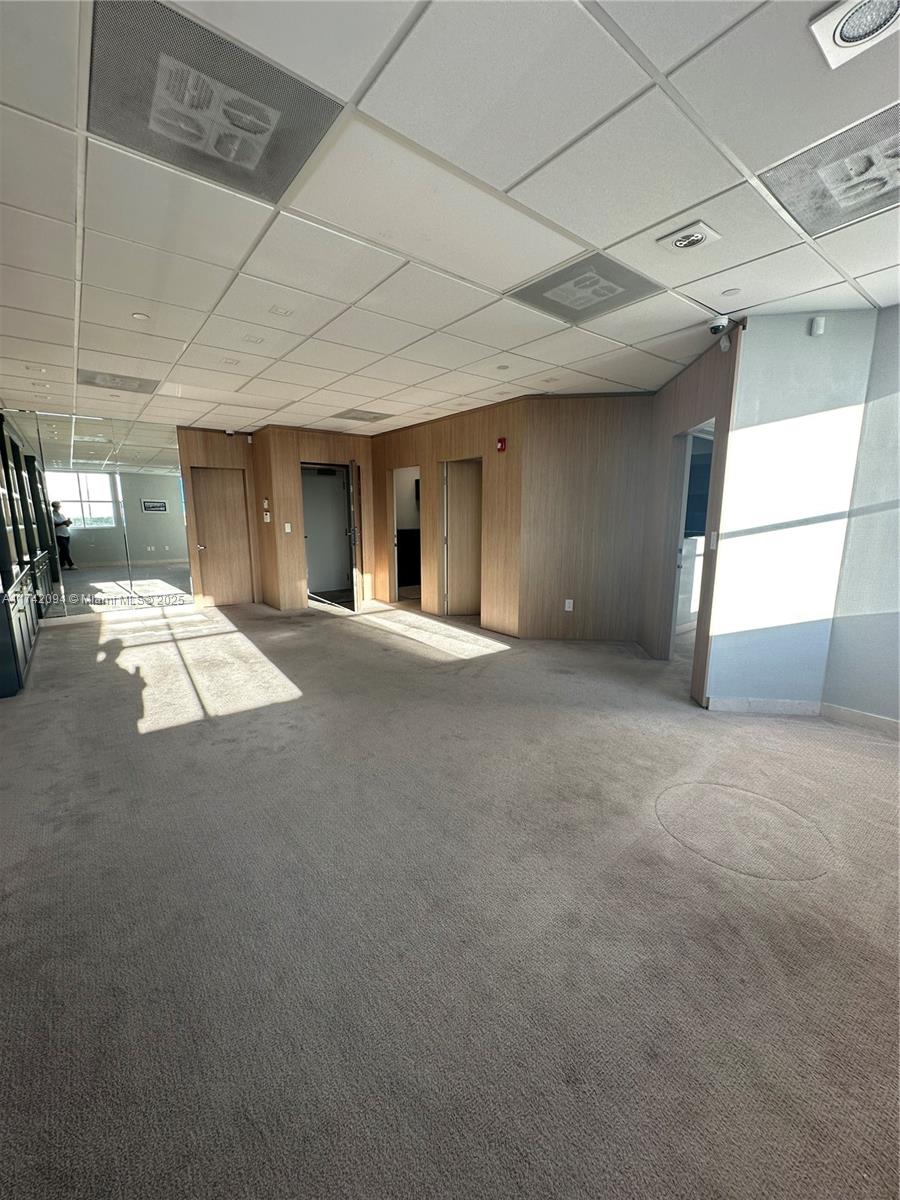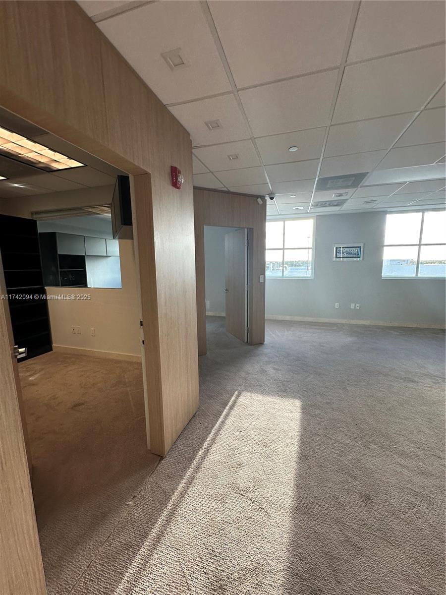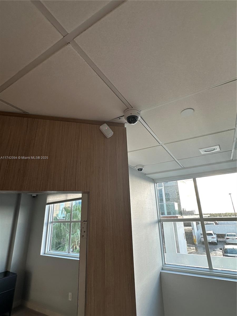Large unit completely remodeled with wood paneling. Three offices with lots of light and windows. A large open working space. There is a kitchen. Vault door, safe in on of the office. Camera security and unit with a sophisticated security system. Partially furnished. Crema marfill marble floor below carpet. Two assigned parking and numerous guest parking. Hallways newly renovated. Brand new modern elevators and building completely painted a year ago. On Site management.