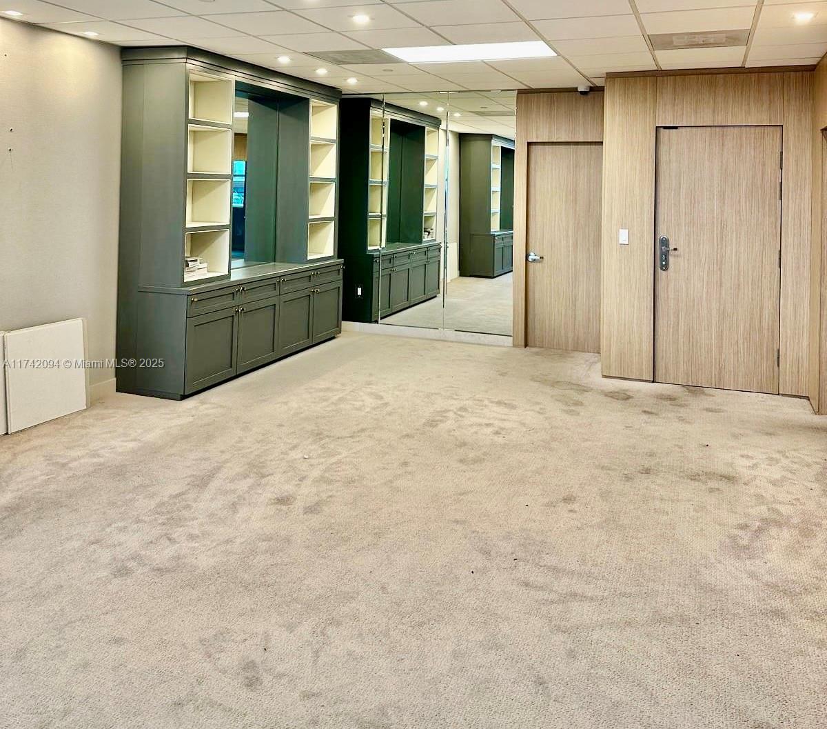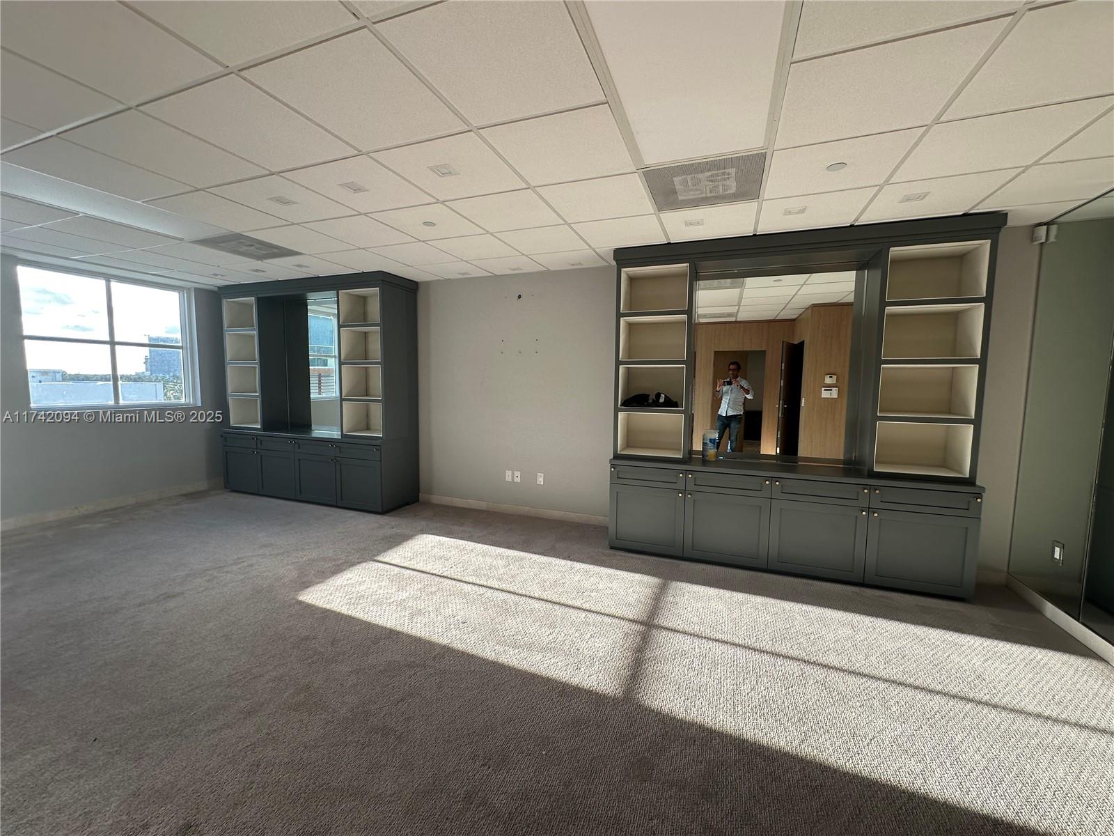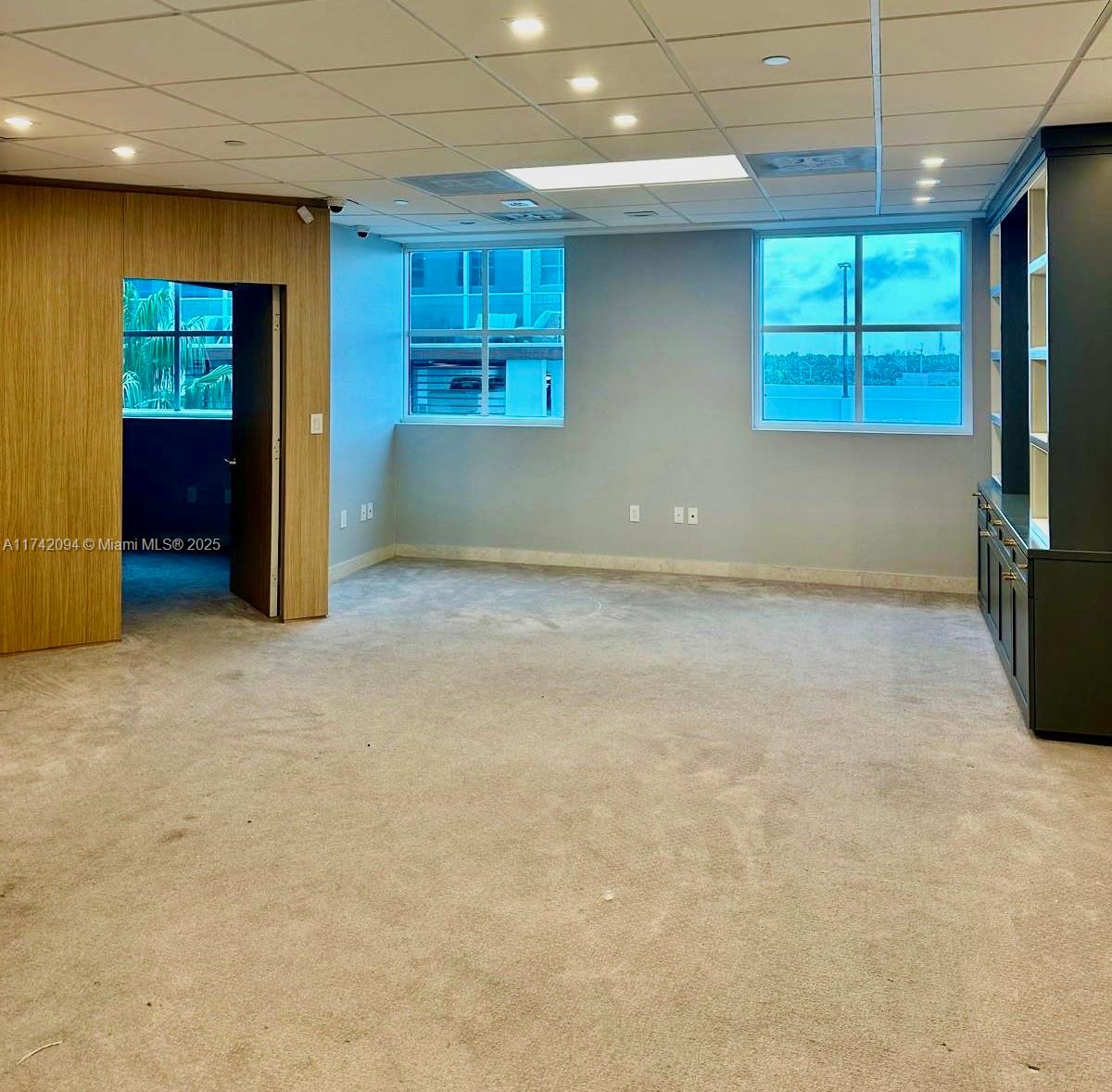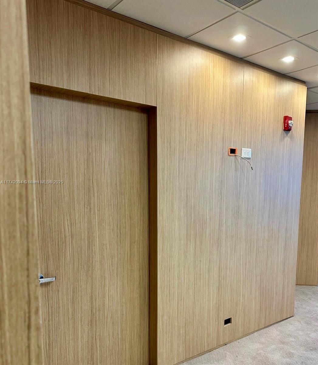 Large unit completely remodeled with wood paneling. Three offices with lots of light and windows. A large open working space. There is a kitchen. Vault door, safe in on of the office. Camera security and unit with a sophisticated security system. Partially furnished. Crema marfill marble floor below carpet. Two assigned parking and numerous guest parking. Hallways newly renovated. Brand new modern elevators and building completely painted a year ago. On Site management.