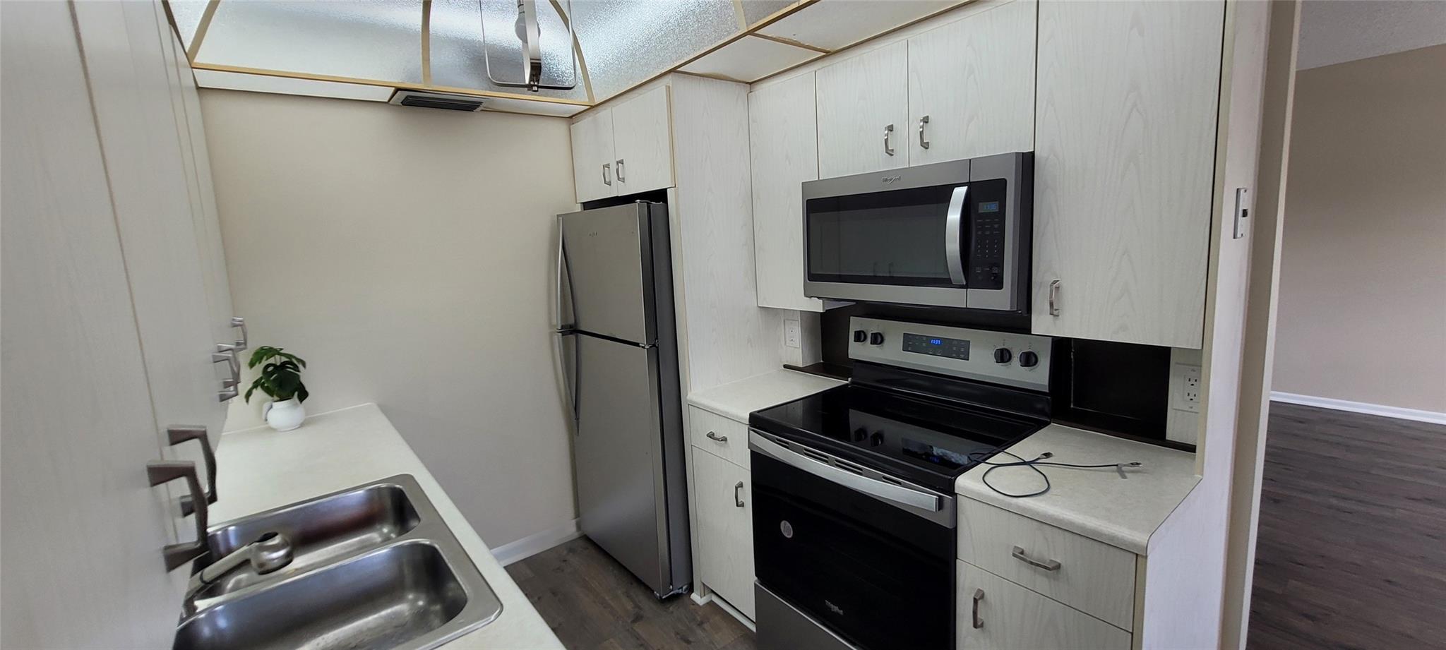 Spacious 2/bed., 1.5/bath., 4th/floor in the Heart of Century Village with Serene Lakeside Views, relaxing water/sunset view, just steps away from the pool., renovated after Tenant moved out. Brand new AC, boiler, floor and all appliances in the kitchen. Primary bedroom has direct access to the large balcony and large walk-in closet. Laminate floors in the bedrooms & living area. The building provides an elevator, storage room, and laundry on the same floor. Tenant and guests parking in the front to the Building. Century Village is a meticulously manicured, gated 55+ community offering a vibrant lifestyle with endless activities, clubhouse, pool, exercise room, tennis court, entertainment, classes, etc., all free of charge. Bus service for residents inside and outside the complex.