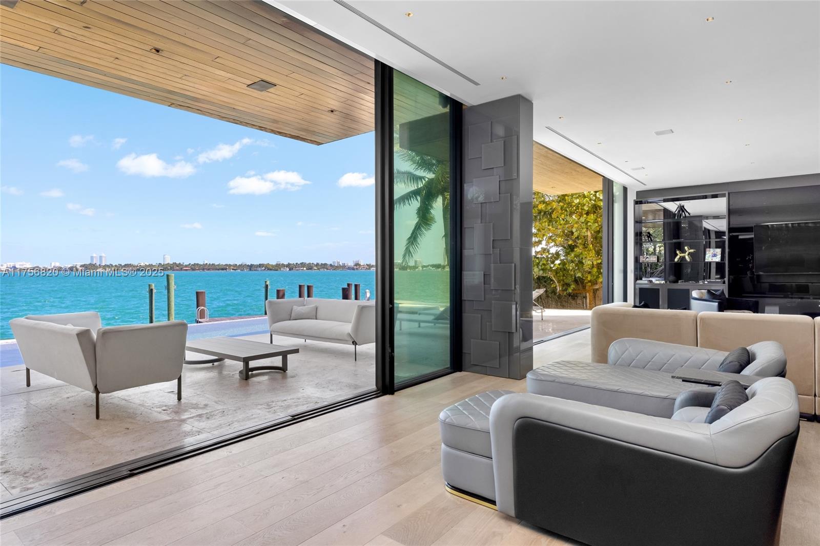 Welcome to 825 E DiLido Dr - Your exclusive enclave in Miami Beach designed by the renowned Choeff Levy Fischman. This waterfront villa epitomizes modern and sophistication featuring breathtaking floor-to-ceiling panoramic views of the open bay, an impressive 107 feet of pristine water frontage, 7 expansive bedrooms, 7.5 bathrooms, European white oak floors, an open 63-foot wide living room, high 12-foot ceilings, a gourmet kitchen, maid’s quarters, and gym featuring an invisible glass wall. Outside, you’ll discover an infinity edge lap pool with an integrated spa complemented by a summer kitchen and bar. Being conveniently located in the Venetian Islands, you are just minutes away from the finest beaches and dining experiences Miami has to offer.