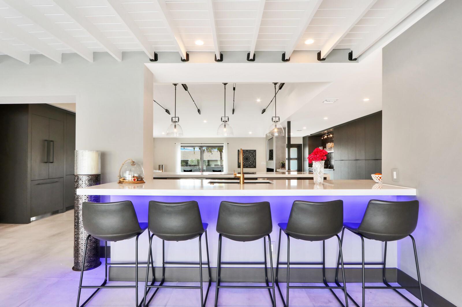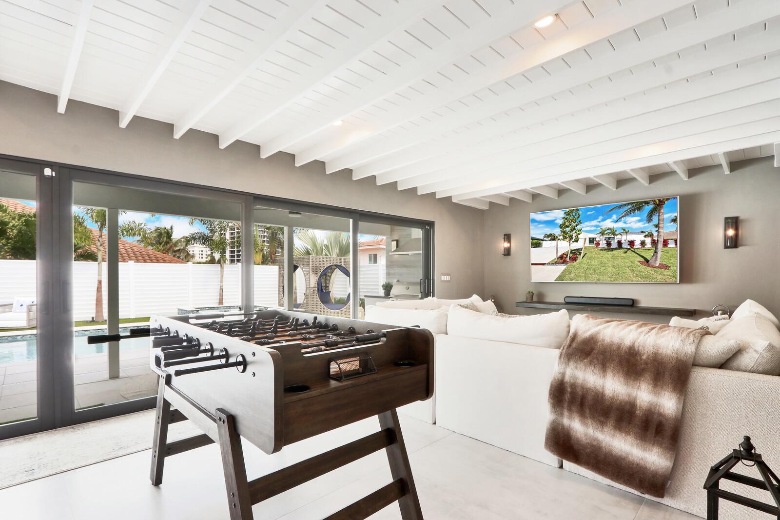 Welcome to your seaside retreat. Enjoy this professionally designed and decorated beachside paradise bringing the Northwest feel to the Juno seaside,.There is not a detail missed in this luxurious home.Sleeps 14, dining for 20. Restoration Hardware inspired decor throughout including furnishings, Italian imported porcelain concrete look flooring, and kitchen and bath appointments.The spacious and bright double living area is conducive to large gatherings featuring a double sided fireplace, entry wet bar and two separate bar top dining areas.. Entertainment room with 86'' tv and foosball table opens out into the fabulous covered outdoor living space. Kitchen features Thermadore Integrated appliances, quartz counter tops, ample custom cabinetry,printer/charger bar work station,built-in oven