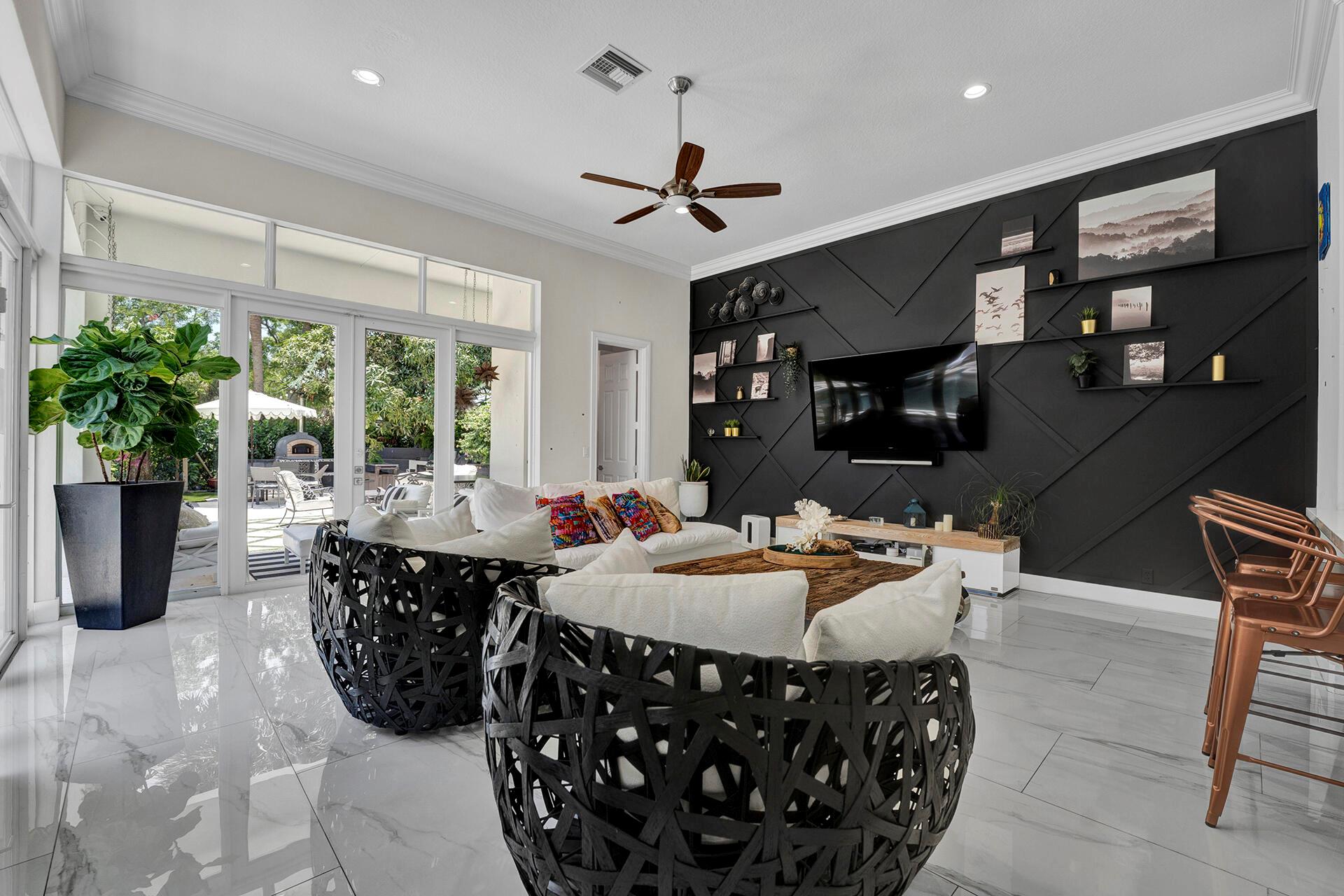 Elevated to the next level this Resort Style home is just 1 Street past Stribling, w/fast access to the horseshow! The Warmth & Sophistication this 6 bed 5 1/2 bath home includes a Primary retreat w/2 walk-in closets & a dreamy on suite bathroom. An additional bedroom w/adjoining bathroom on the main level. An additional 2nd Primary Suite on 2nd floor, along w/3 more bedrooms all w/full adjoining bathrooms. A Chef's Kitchen inside, 2 add. outdoor kitchen areas. Complete w/wet bar & Multiple Gourmet cooking options, including Wood-Burning Pizza Oven, Grill, Big Green Egg, area for a deep fryer, plenty of space for a private chef to come in & treat you & your guests to a gourmet experience. Heated Saltwater pool, & a 10-person spa. Cabana Bath. Surround Sound inside & out. Smart Home tech