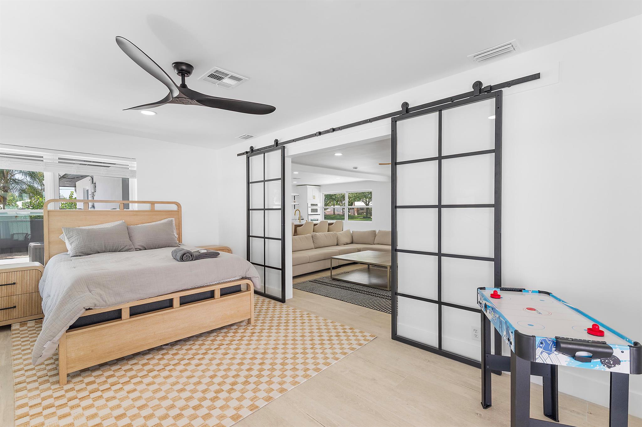 Experience unparalleled luxury in this breathtaking 3-bedroom, 2-bathroom single family home! Unwind in a modern paradise meticulously crafted with top-quality finishes and exceptional attention to detail. Gleaming quartz countertops with waterfall accents, brand new smart Samsung appliances, and gorgeous porcelain tile floors create a space that's both beautiful and functional. Relax in spa-like bathrooms featuring floor-to-ceiling porcelain tile and oversized walk-in showers. Fully Furnished turn key, Just bring your wardrobe and tooth brush, as this home sets beautifully staged. Outside is pristine landscaping in the front yard, the backyard it is all Turf with a mini putt-putt green for pleasure. Enjoy a covered back patio for all your BBQ and outdoor dining experiences.
