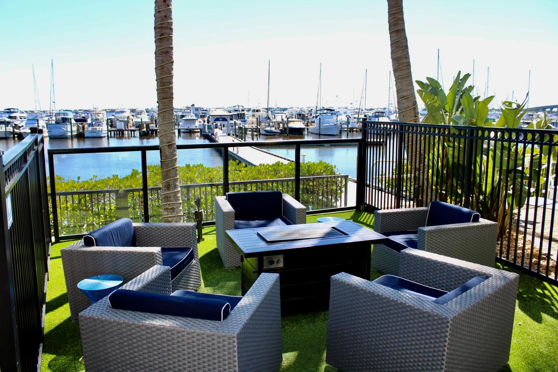 Discover luxury at The Harborage Yacht Club & Condos in this fully furnished, turnkey 2-bedroom, 2-bath waterfront condo, meticulously updated with modern charm and upgrades. Enjoy breathtaking sunrise views from the master bed through a wall of glass overlooking the marina and Pool. Thoughtful built-ins in all closets, spacious walk-ins, impact windows, luxury slate flooring, stone countertops, and stainless-steel appliances add to the appeal. The secure gated building offers covered parking and elevator access. Ideally situated next to the amenities including a vibrant community, clubhouse with fitness center, sauna, steam room, billiards, two pools, hot tub, poolside cafe, on-site dining at Tidehouse and Latitude 26, and boat slips for vessels up to 100 feet. Just bring your suitcase