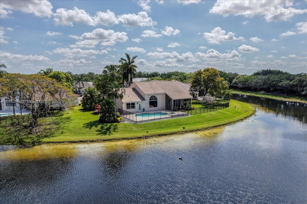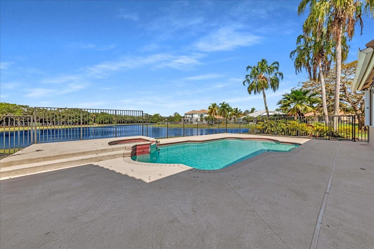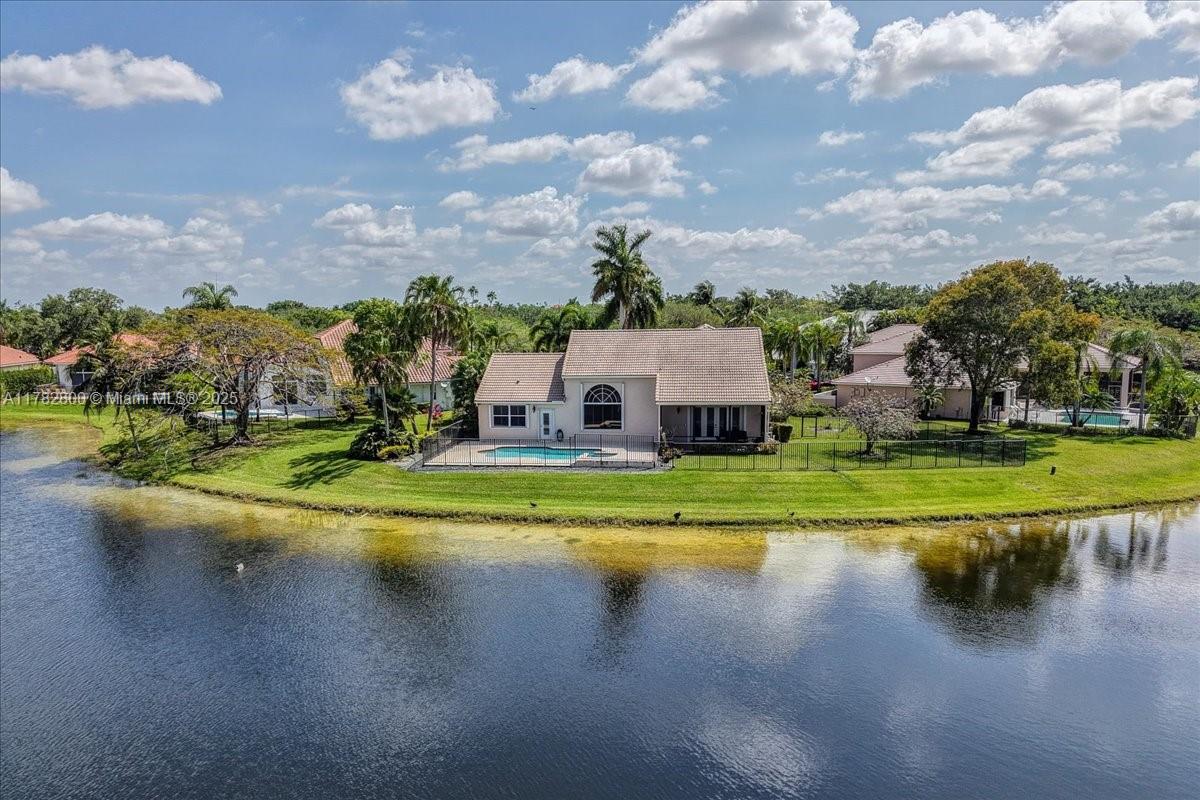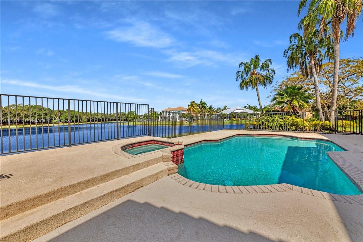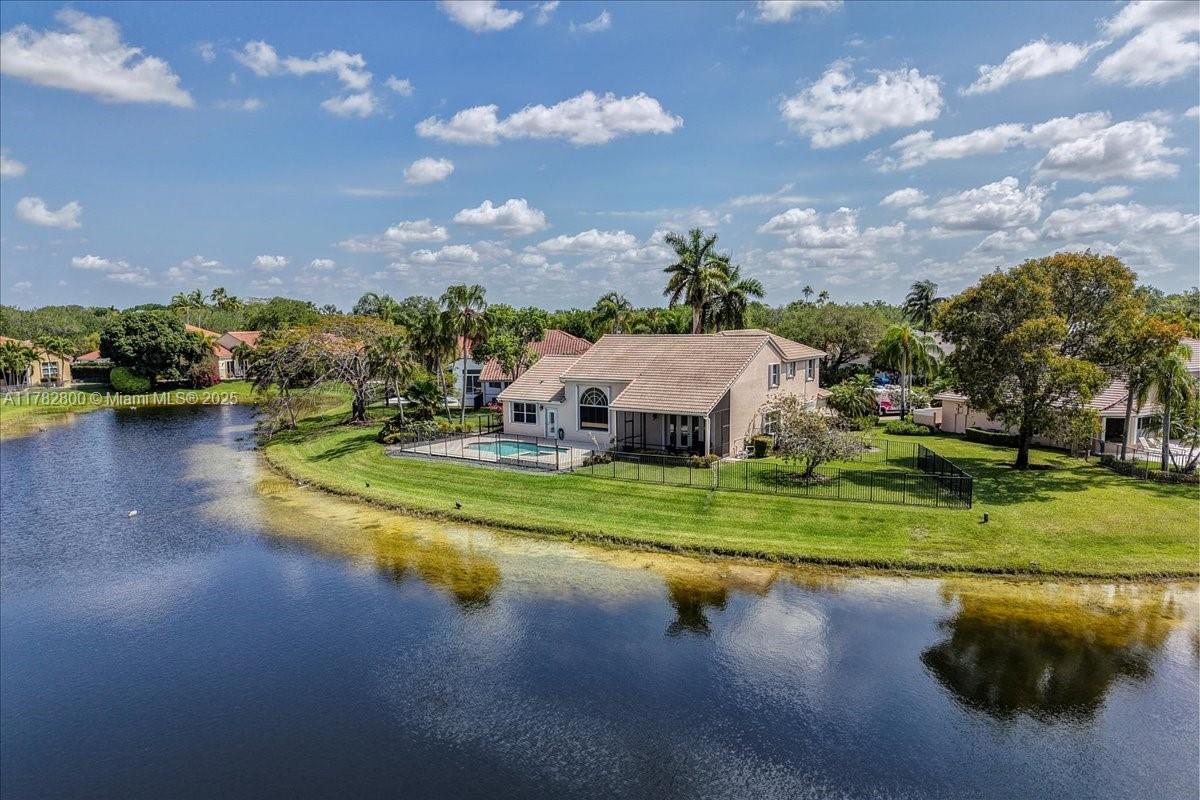 Discover ultimate privacy on a massive 18,314 SqFt lakefront cul-de-sac lot in Weston's premier 24-hour guard-gated community. This 4-bed, 3-bath + office home offers soaring ceilings, plantation shutters, and a bright, open great room. Enjoy a gourmet kitchen with granite countertops and stainless steel appliances, plus formal living, dining, and a spacious family room. The primary suite features a walk-in closet and a spa-inspired bath with Jerusalem tile, dual sinks, Jacuzzi tub, and walk-in shower. Outdoors, unwind in your tropical retreat with lush landscaping, a sparkling Diamond Brite pool, and a large fenced yard with tranquil lake views. Additional highlights include a 3-car garage and hurricane shutters. Zoned for top-rated Weston schools. Can be rented furnished or unfurnished