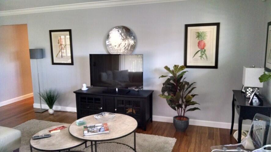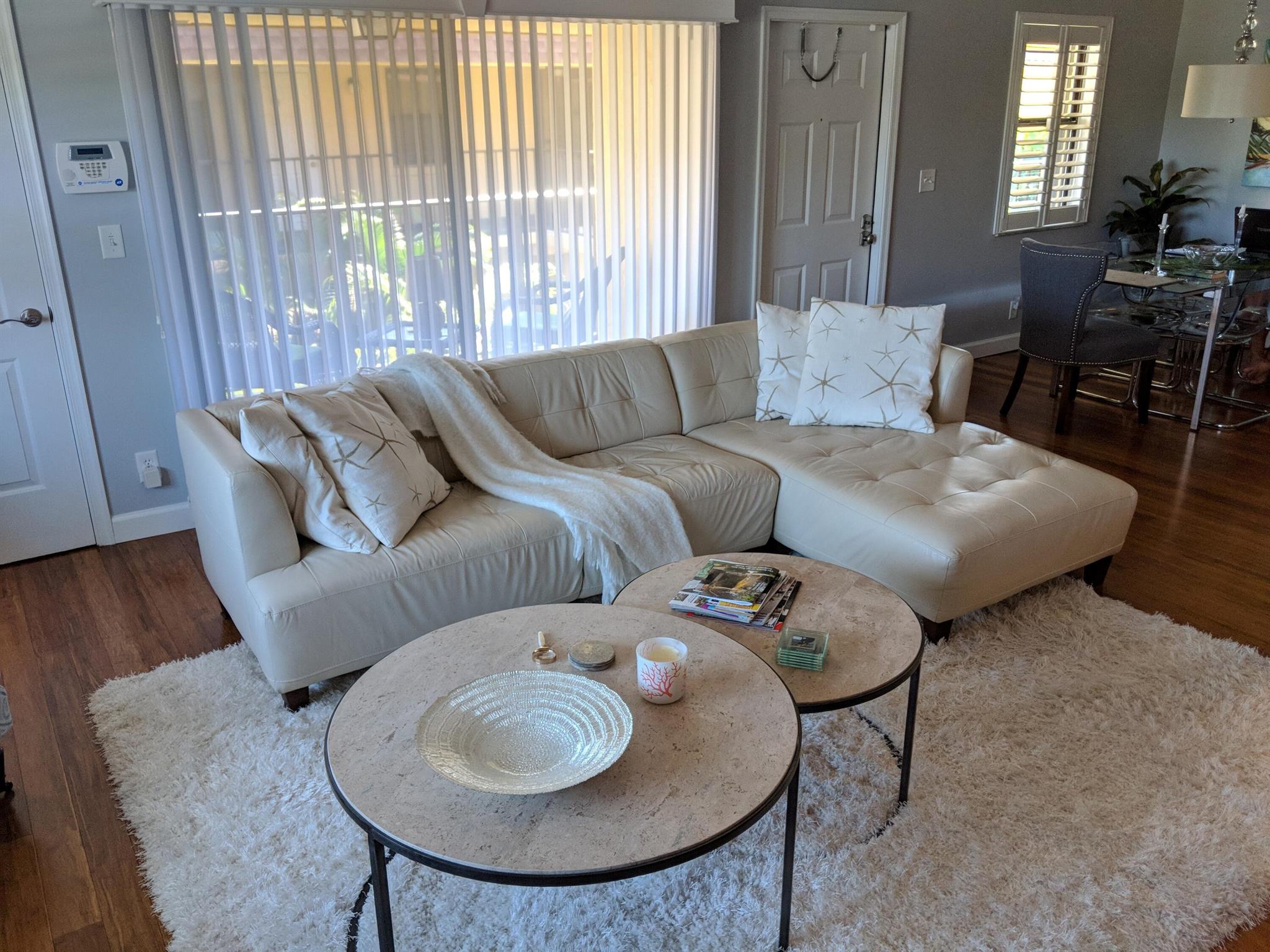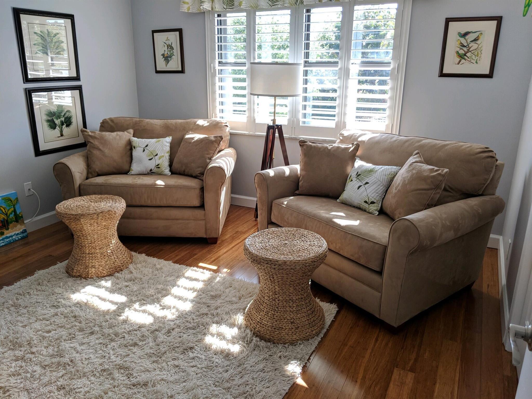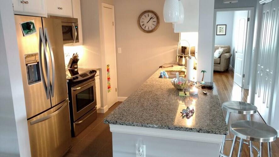 Awesome BIG, light bright and airy, 2 bed 2 bathroom condo, fully furnished with modern furniture, throw rugs, lamps, and beach chairs, on the second floor, end unit, tons of light, in an awesome location, minutes to downtown Lake Worth! Ride your bike to the Beach in under 1 mile! Enjoy the benefits of a small town, downtown, atmosphere with your local pubs, restaurants, micro breweries, theater, and soo much more! Off street parking, guest spot, street parking, all within a very quiet section of N M St. Only 2 blocks from all the happenings of historic downtown Lake Worth. Super clean unit, hardwood flooring throughout, tile in kitchen and bathrooms, gorgeously renovated, to the 9's!! Condo association has a very quick turnaround time for applications and approvals. Each applicant must