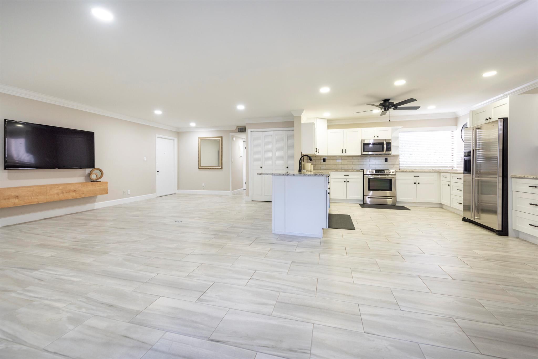 First mo. & security deposit moves you in. Beautifully remodeled 2/2 first floor condo located in the quiet 55+ community of Woodhaven in Boca Del Mar. Situated in central Boca Raton close to dining, shopping, and public parks. This condo has plenty of living space with a large open kitchen, 3 walk-in closets plus full-size washer & dryer and extra utility closets. Residents enjoy a quiet setting with two community pools. Rent includes one assigned parking space with extra shared guest parking, basic cable, water, and trash pickup. This condo is offered as a 1-year lease, unfurnished.