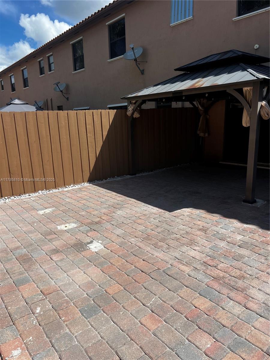 Townhouse in the Chateau Community at Vineyard. Spacious 3 bedrooms, 3 bath with one bedroom and a full bathroom downstairs. First floor with tile and laminated wood in stairs and second floor. Large fenced yard with pavers and an aluminum gazebo great for entertaining. Gated community with access to the Clubhouse's amenities: pool, kids water park, gym, park. Centrally located in the growing area of Homestead. Very close to shopping centers, supermarkets, excellent schools, hospital, healthcare facilities, restaurants, and main highways. Section 8 approved!!!