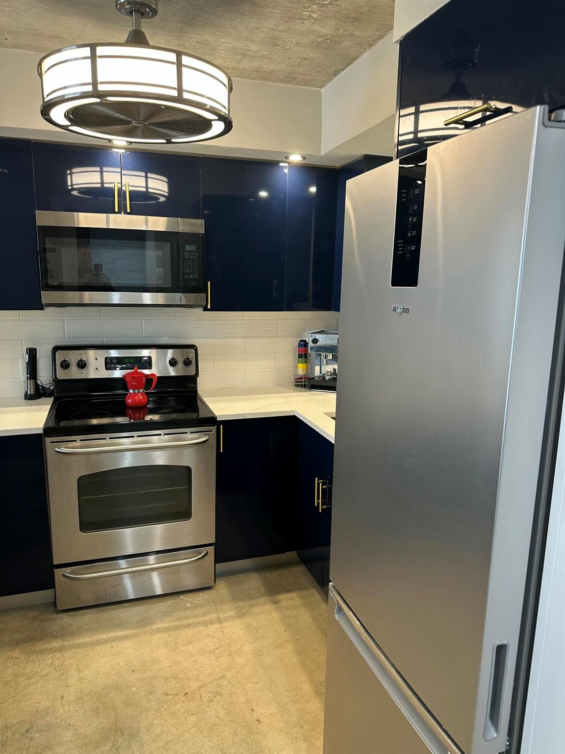 This spacious condo has 1 bedroom and 1.5 bathrooms with a large family room . New kitchen and appliances, . Large master bedroom. Unique polished concrete floors and ceiling Fully furnished. There is a full set of hurricane shutters. Barn doors condo is located close to the elevator and laundry. This property is right on the beach. Comes with a doorman, salt water pool, gym, his/her saunas and community room inside the building. Grassy area where you can sit down outside and enjoy the ocean breeze and views. Close to shopping, entertainment and dining