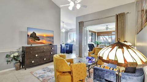 Just bring your toothbrush! Spacious beautiful lakefront rental in the heart of Juno Beach is featuring 3 bedrooms, 2 bathrooms, a one car garage. A ton of natural light comes through this corner residence. A large living and dining area with vaulted ceilings opens to a light filled sunroom, extending your living space and creating the ideal space to entertain, lounge and enjoy the serene water views. The primary suite features beautiful views, a large walk-in closet and a bathroom. Located in beautiful Sea Oats featuring a heated pool, clubhouse, table tennis and tennis courts. Walking distance to restaurants and stores, gorgeous beaches and I95 just minutes away.